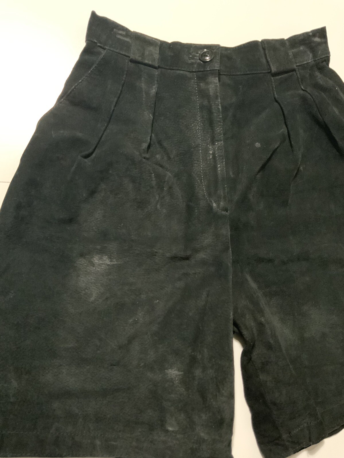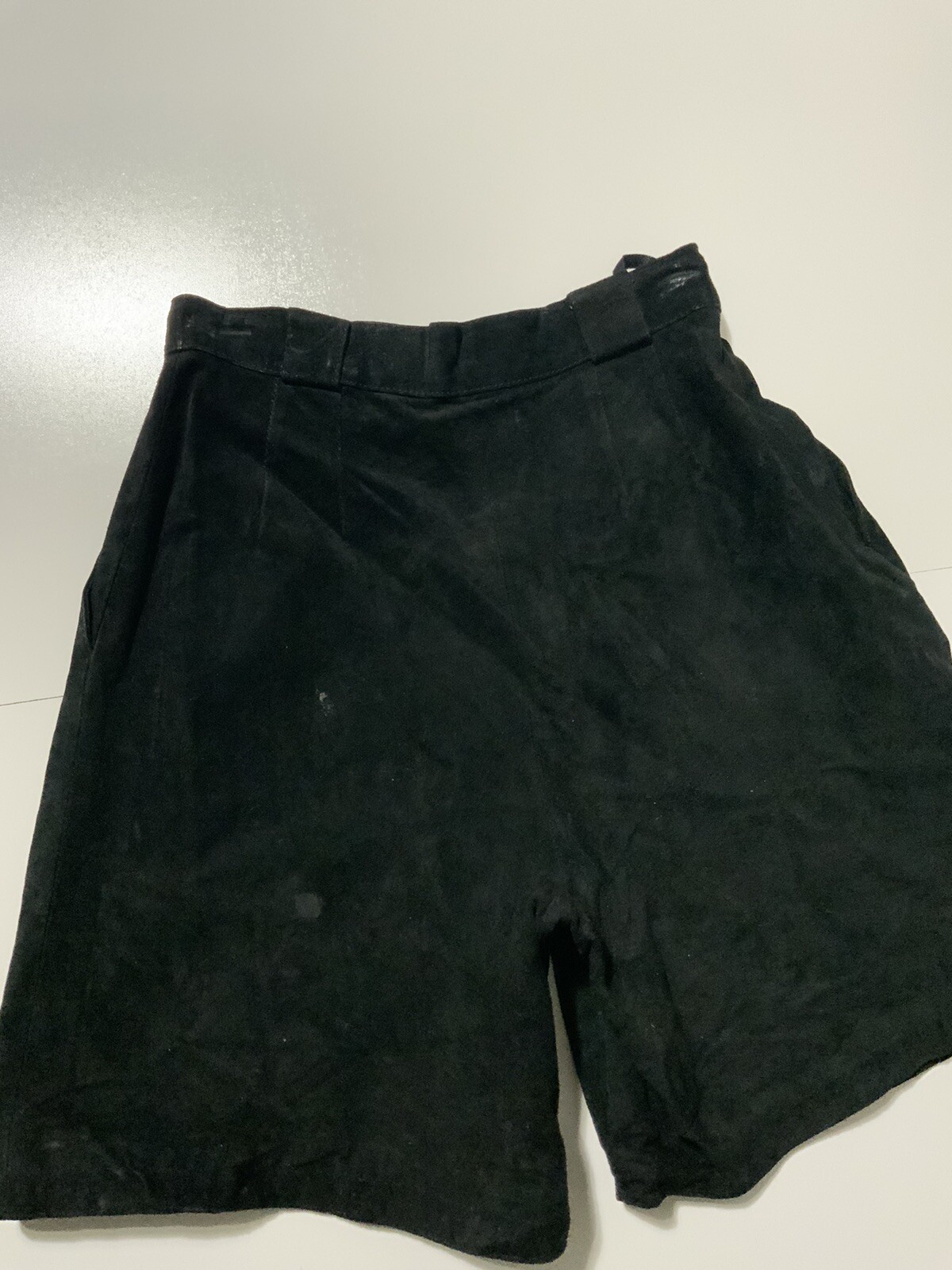 как выглядит Vintage 80s Winlit Black Suede Leather Moto Biker High Waist Women s Shorts 7/8 фото