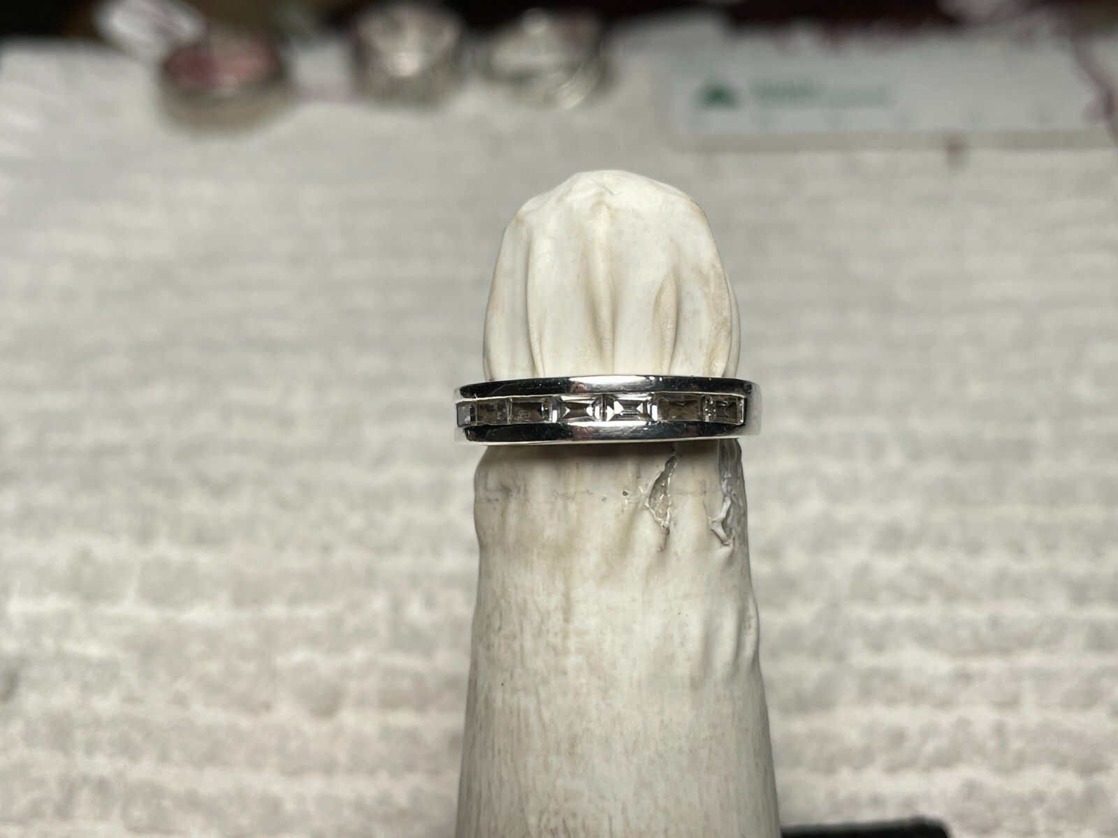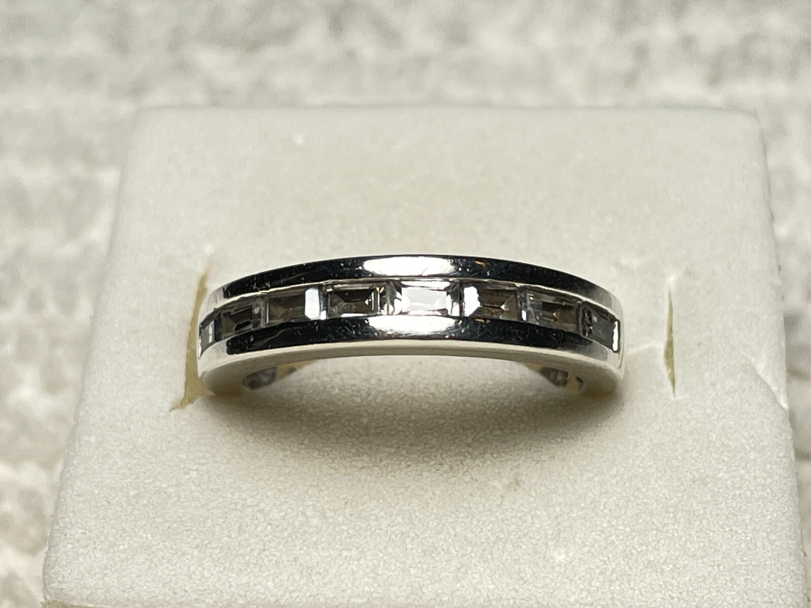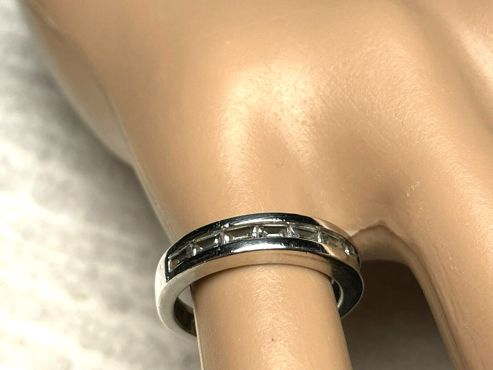 как выглядит Vintage Sterling Silver 925 Band Style Ring with 8 Clear Stones Size 5.25. фото