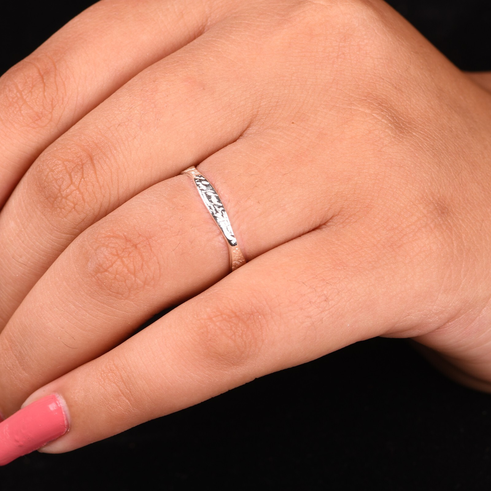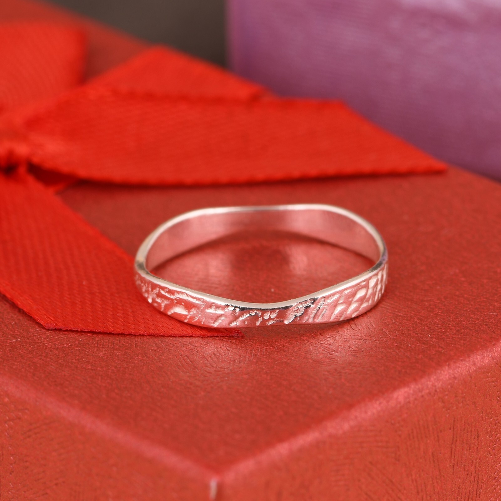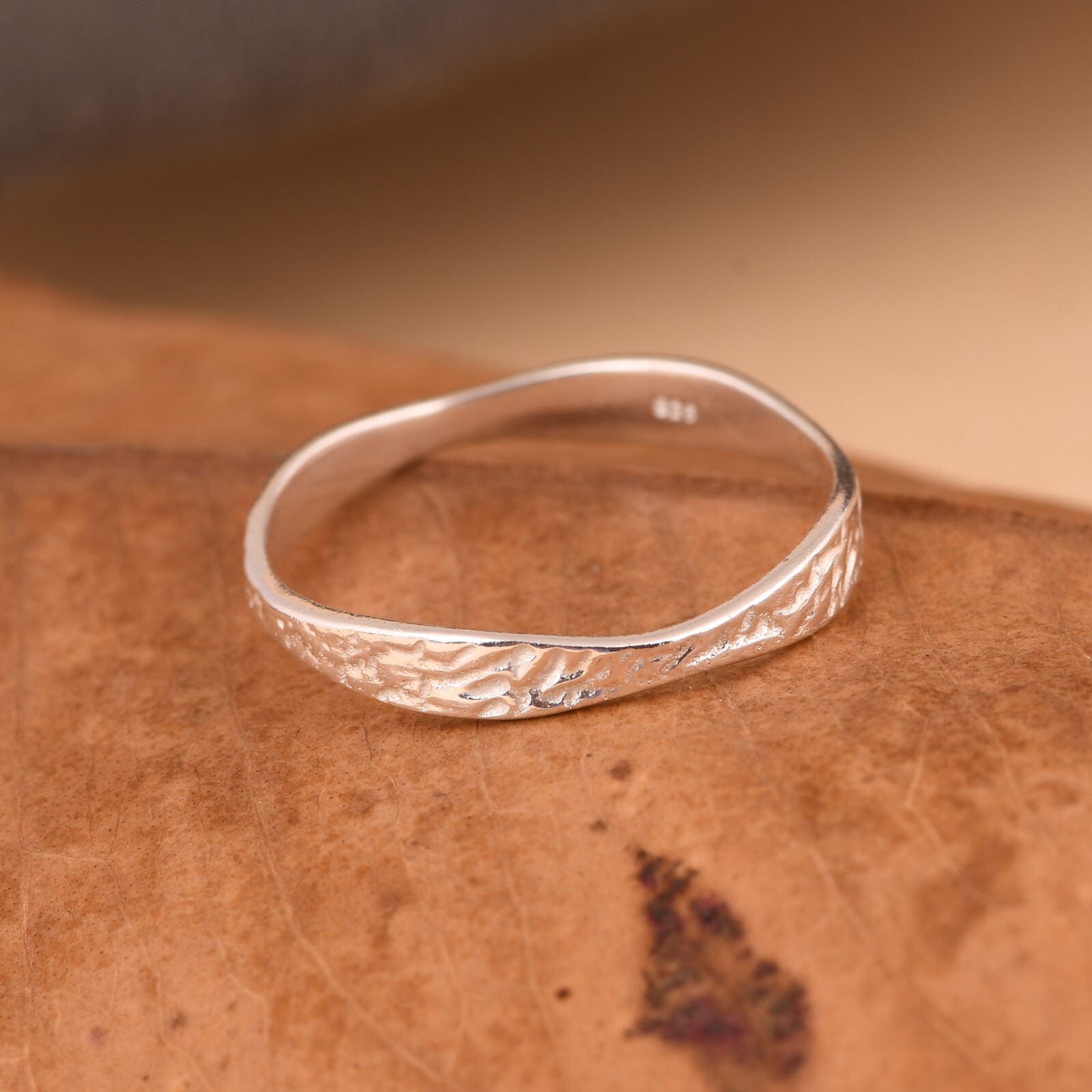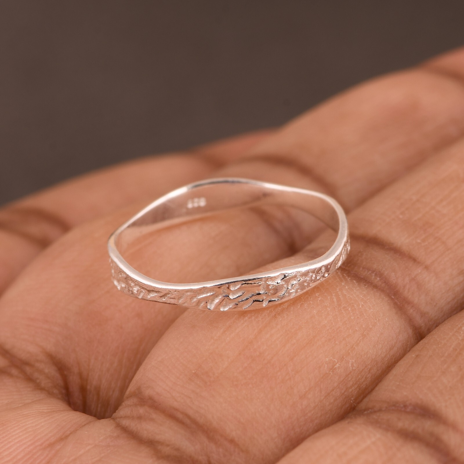 как выглядит Solid 925 Sterling Silver Curved Textured Band Ring Stunning Gift For Women