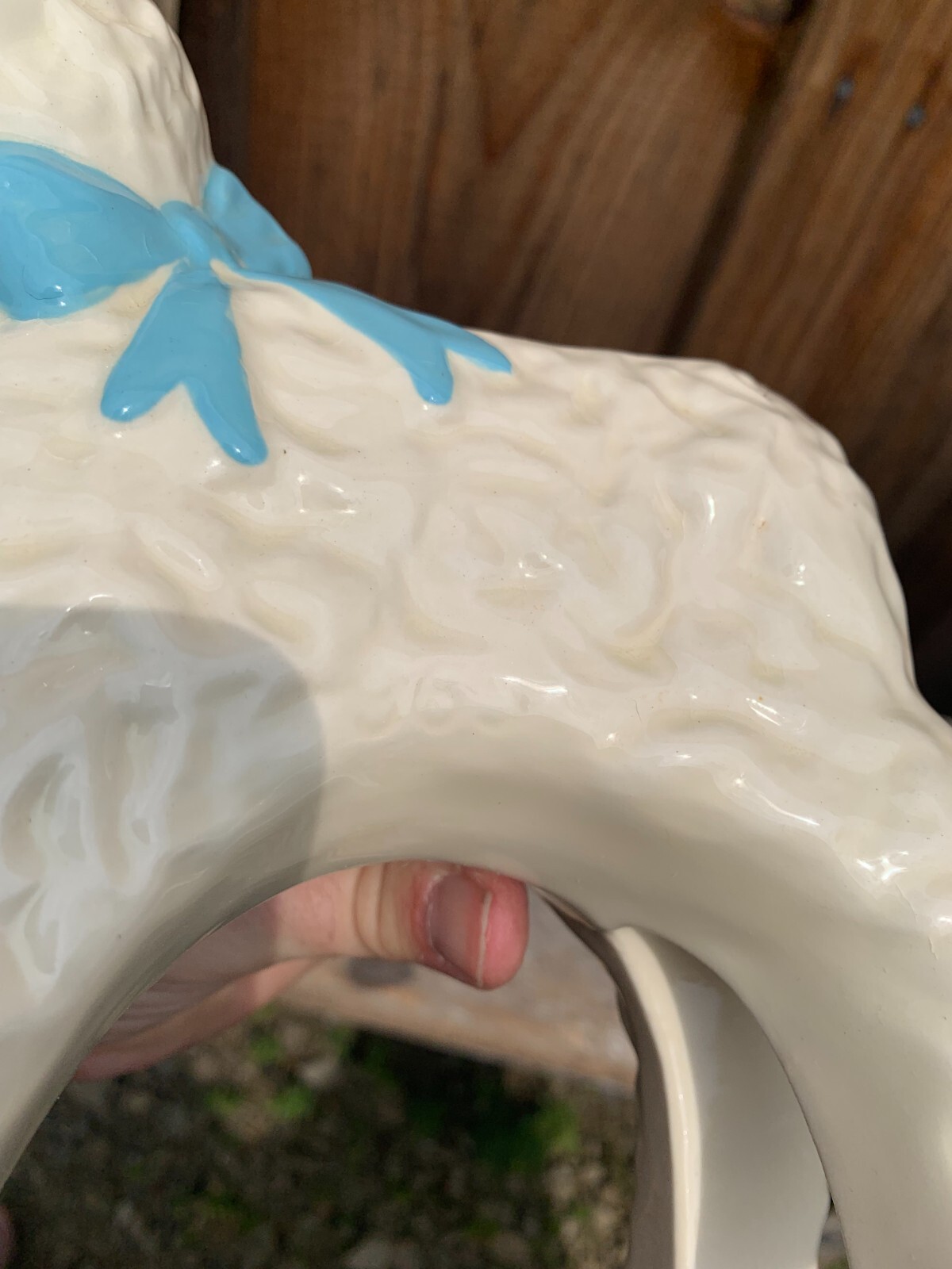 как выглядит Vintage Hull Pottery Lamb Sheep Planter Nursery Baby 8.5 Blue Bow Heavy 965 фото