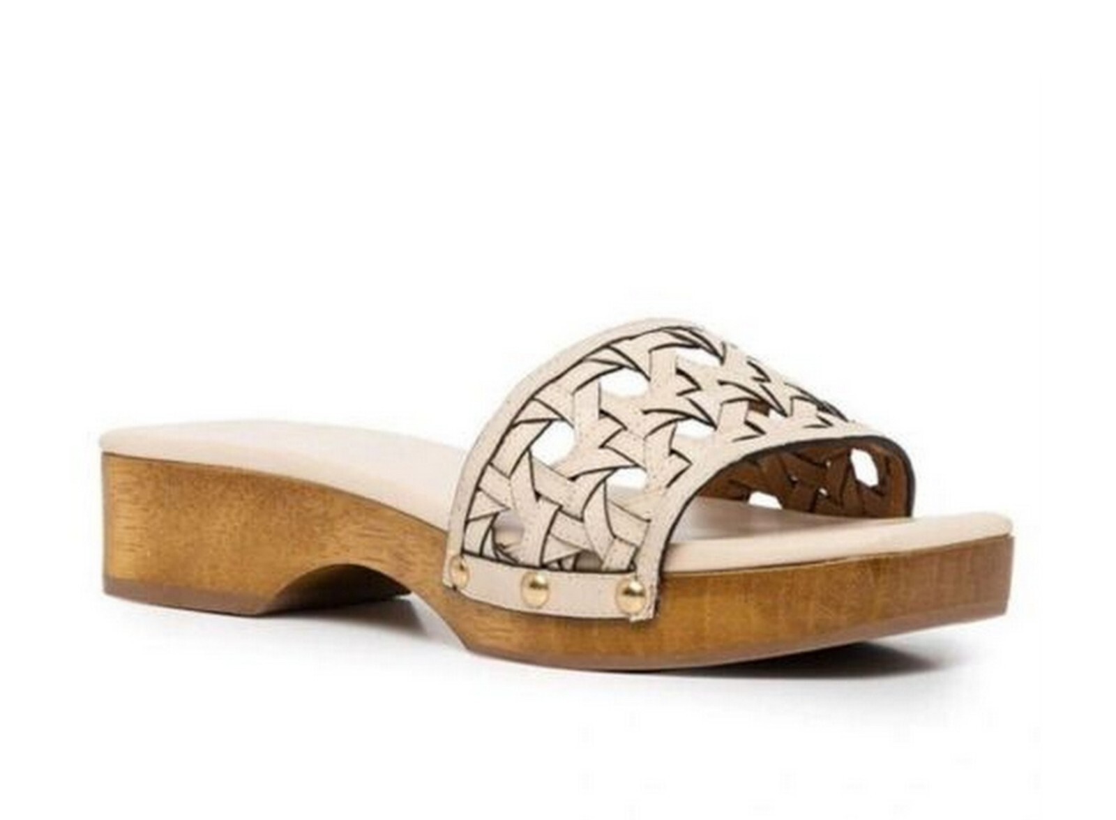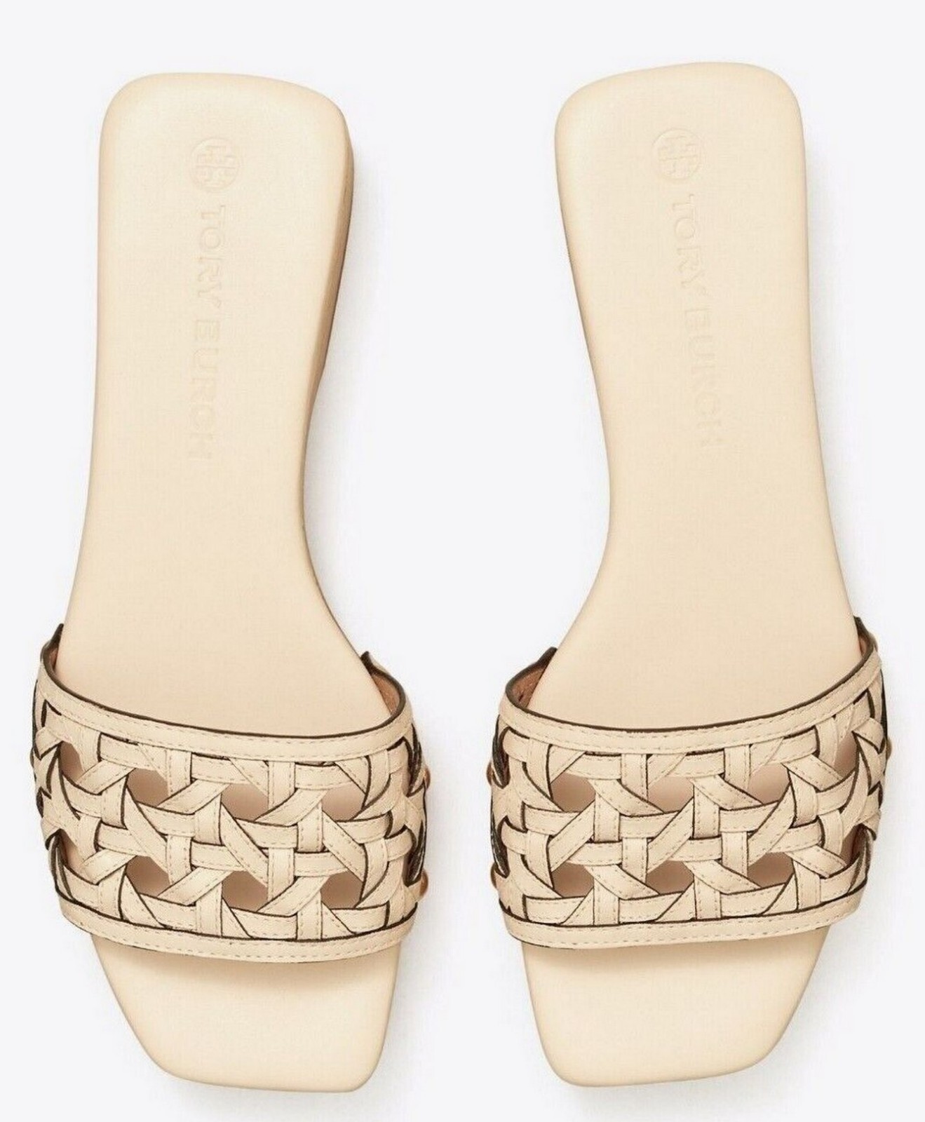 Tory Burch 298 Basketweave Leather Open Toe Clogs Sandals New Cream US 5.5 NEW
