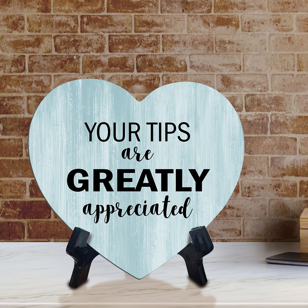 Heart Your Tips Are Greatly Appreciated, Wood Color, Table Sign 6x5