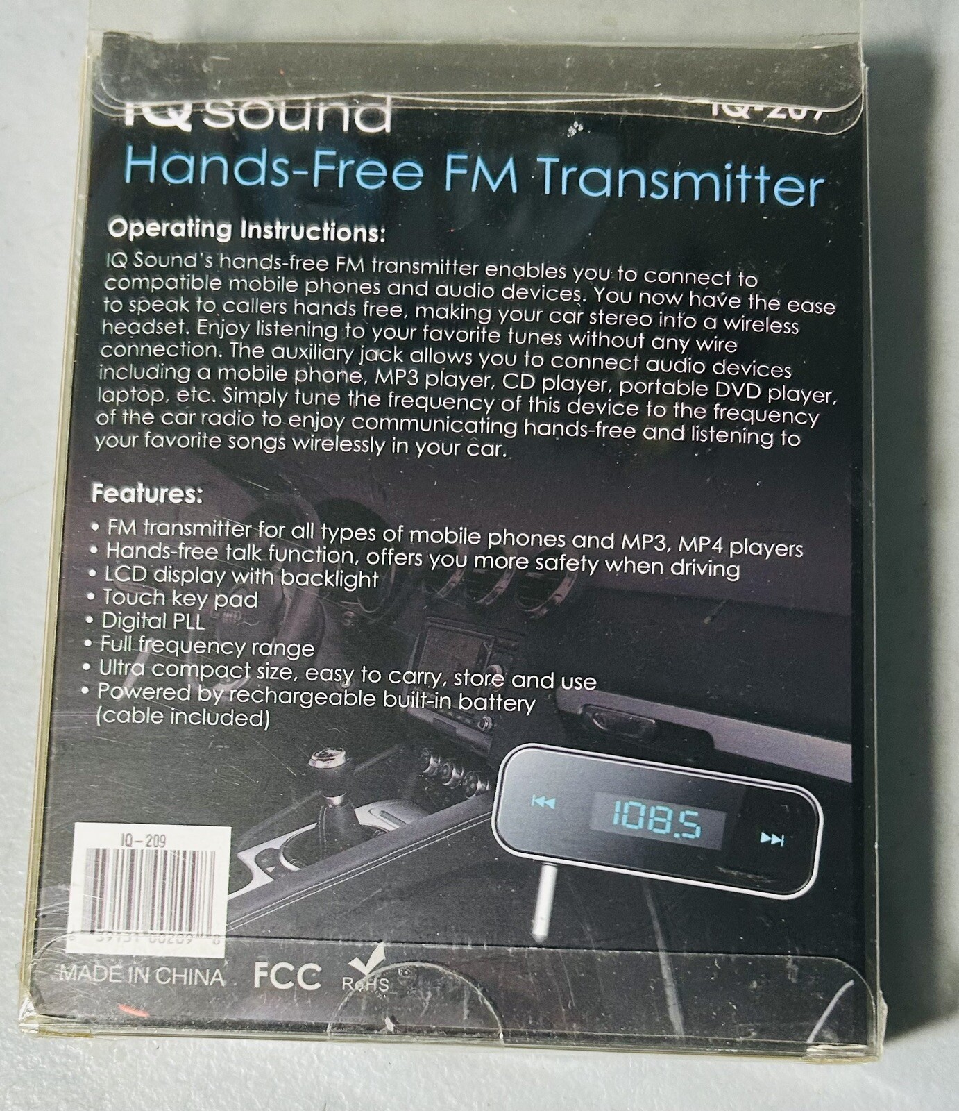 IQ Sound Hands-Free FM Transmitter Hands Free Talk Function Phone MP3 Player