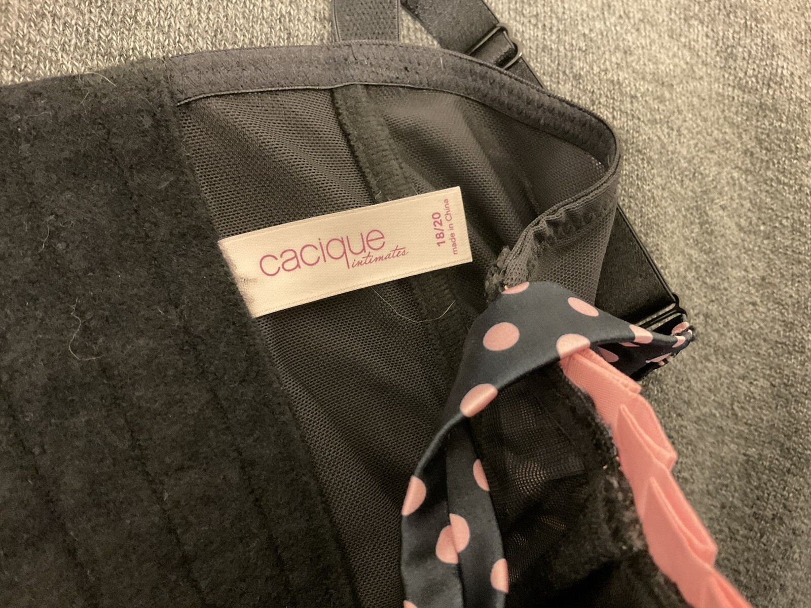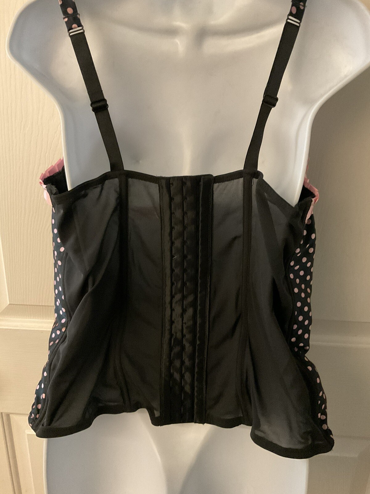 как выглядит cacique bustier NWOT Black W/ Pink Poker Dots Gorgeous Sz 18/20 фото