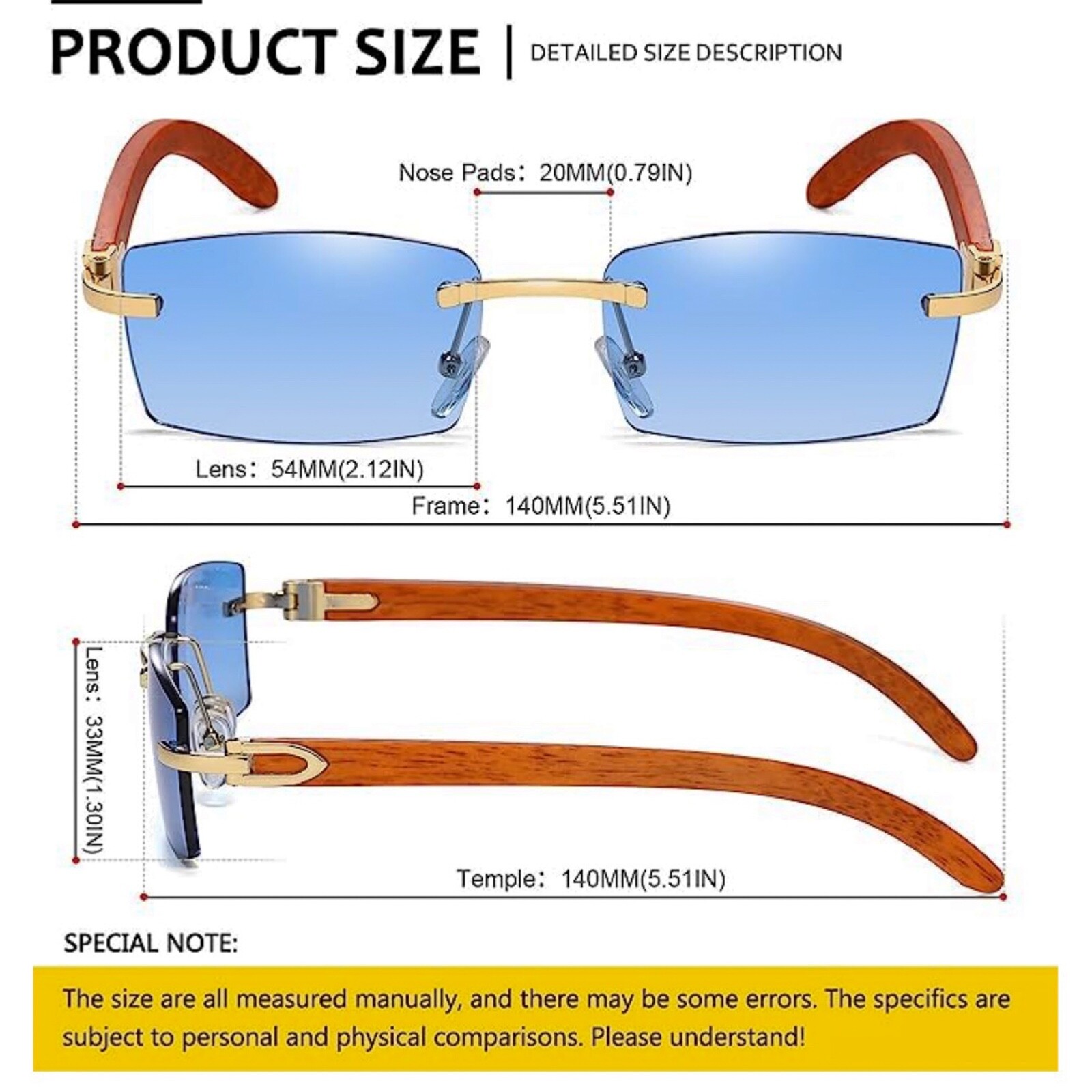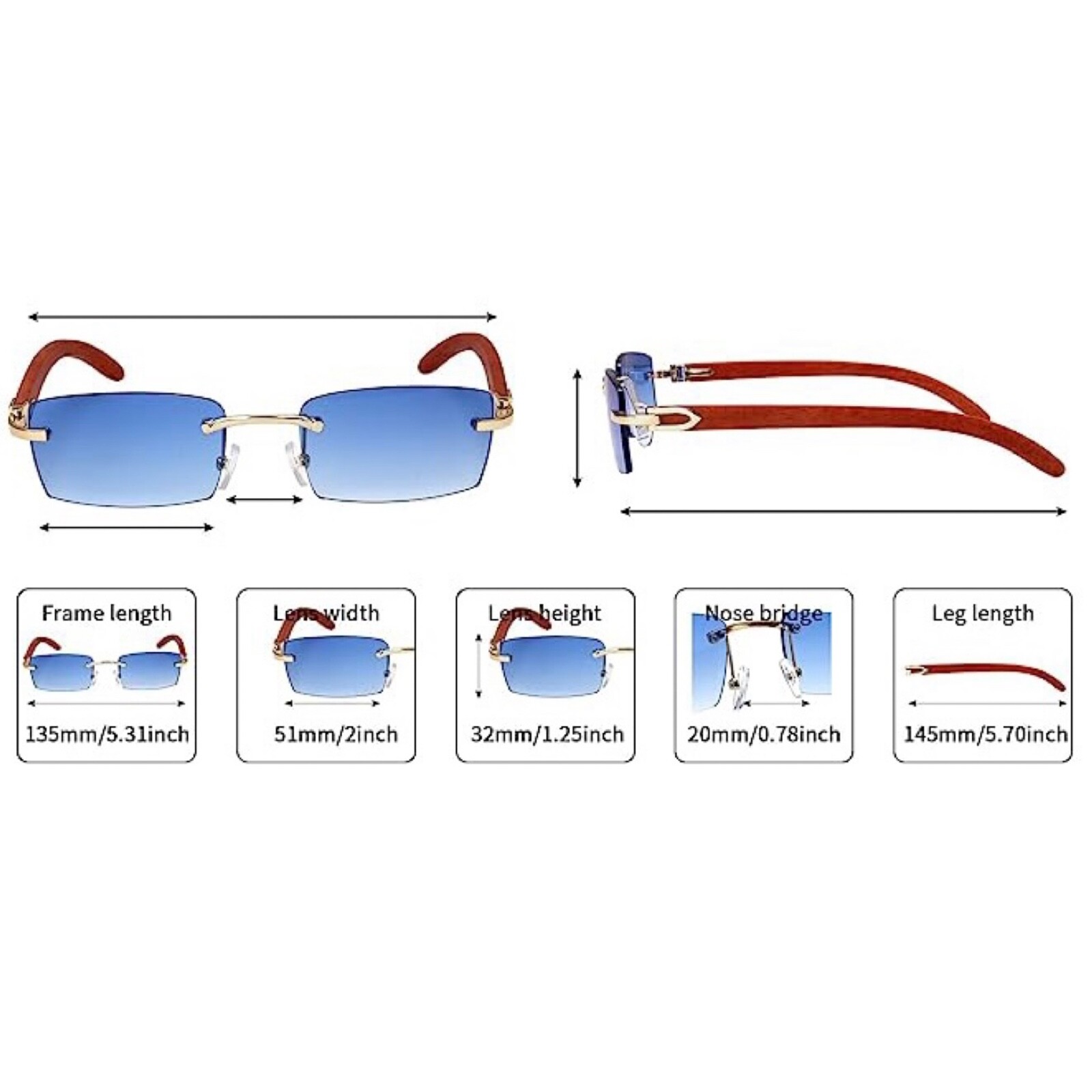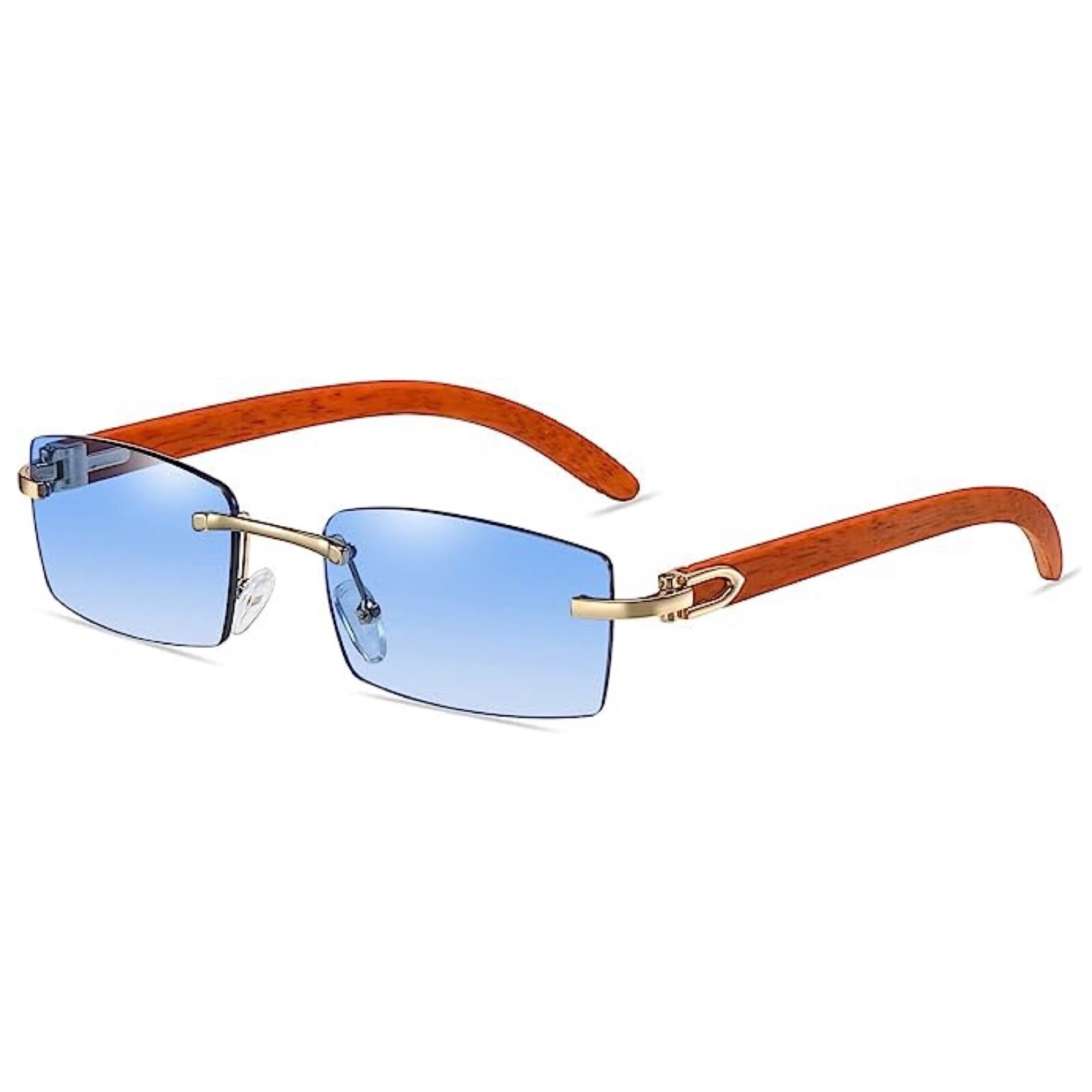 Rimless Gold Frame Men's Women's Woodgrain Frameless Luxury Blue Tint Sunglasses