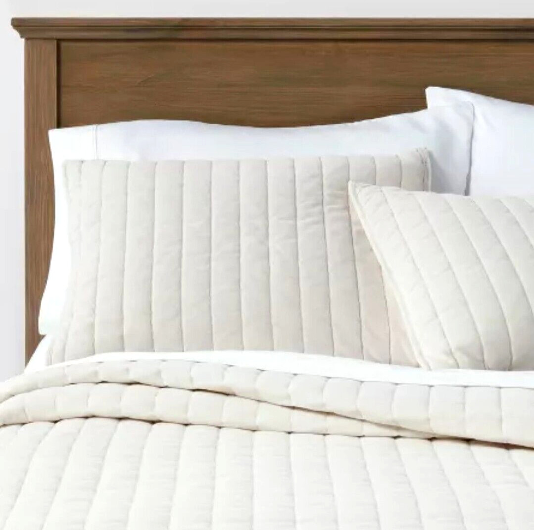 Threshold Channel Stitched Velvet Quilt Full / Queen Ivory / Cream Quilt ONLY