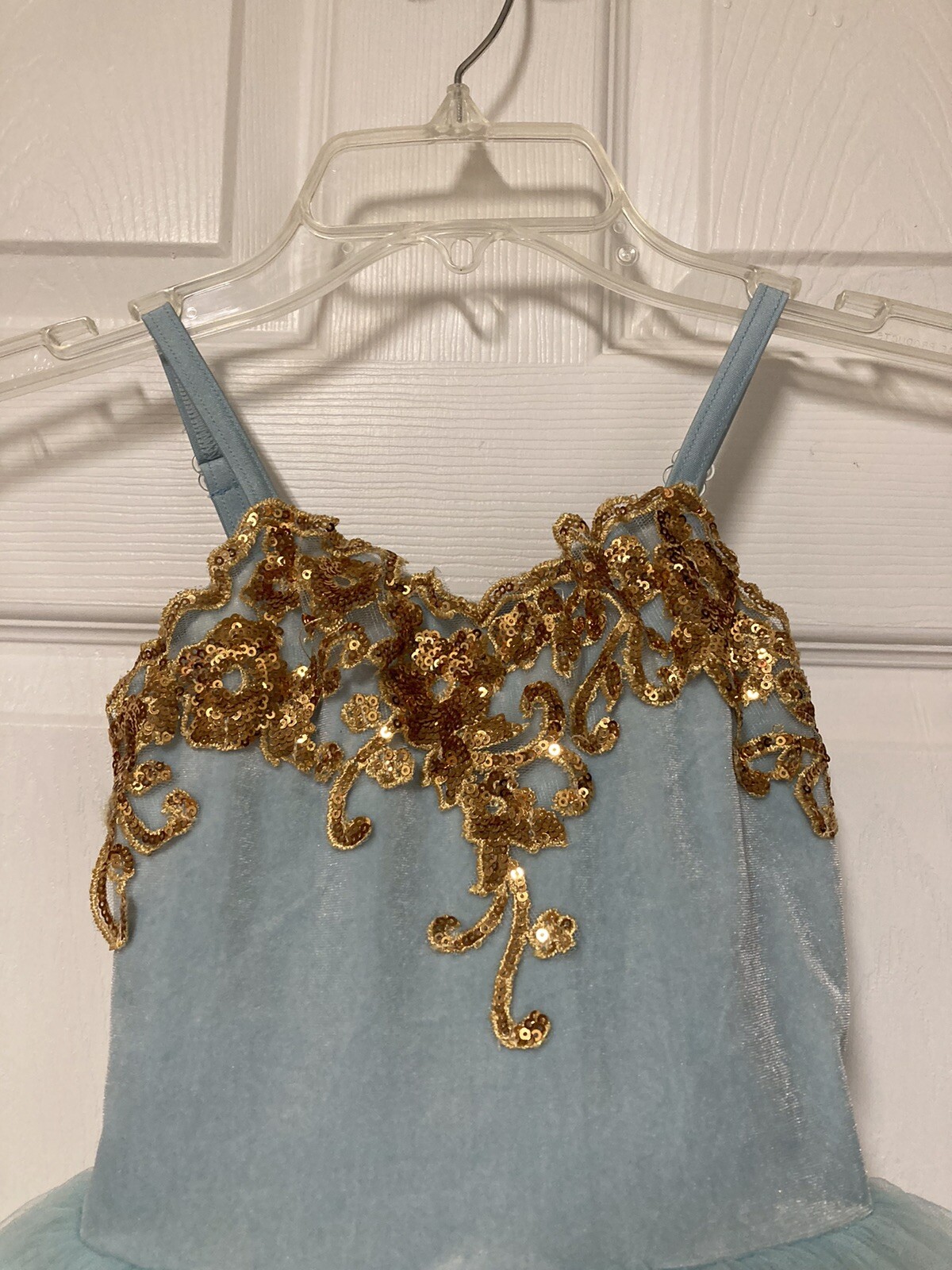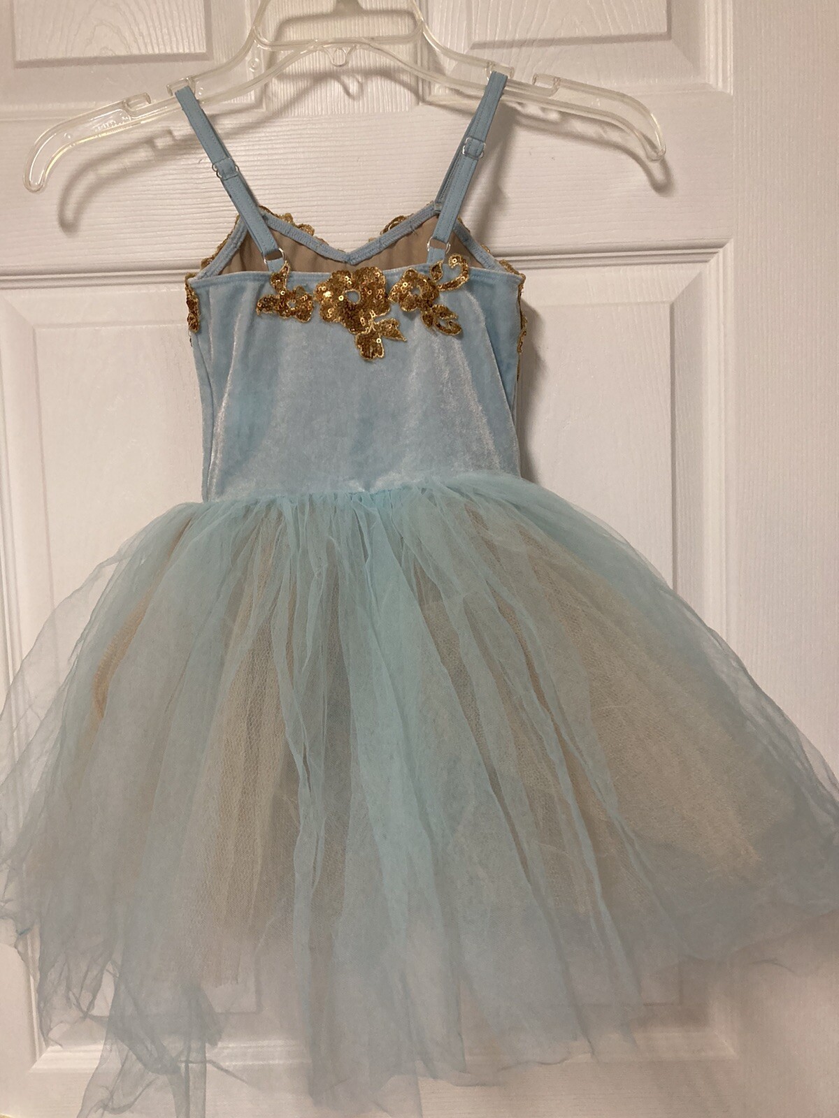 Curtain Call DanceCostume ChildSmall CSM SequinFlowers Dress Tutu BlueBeigeTulle