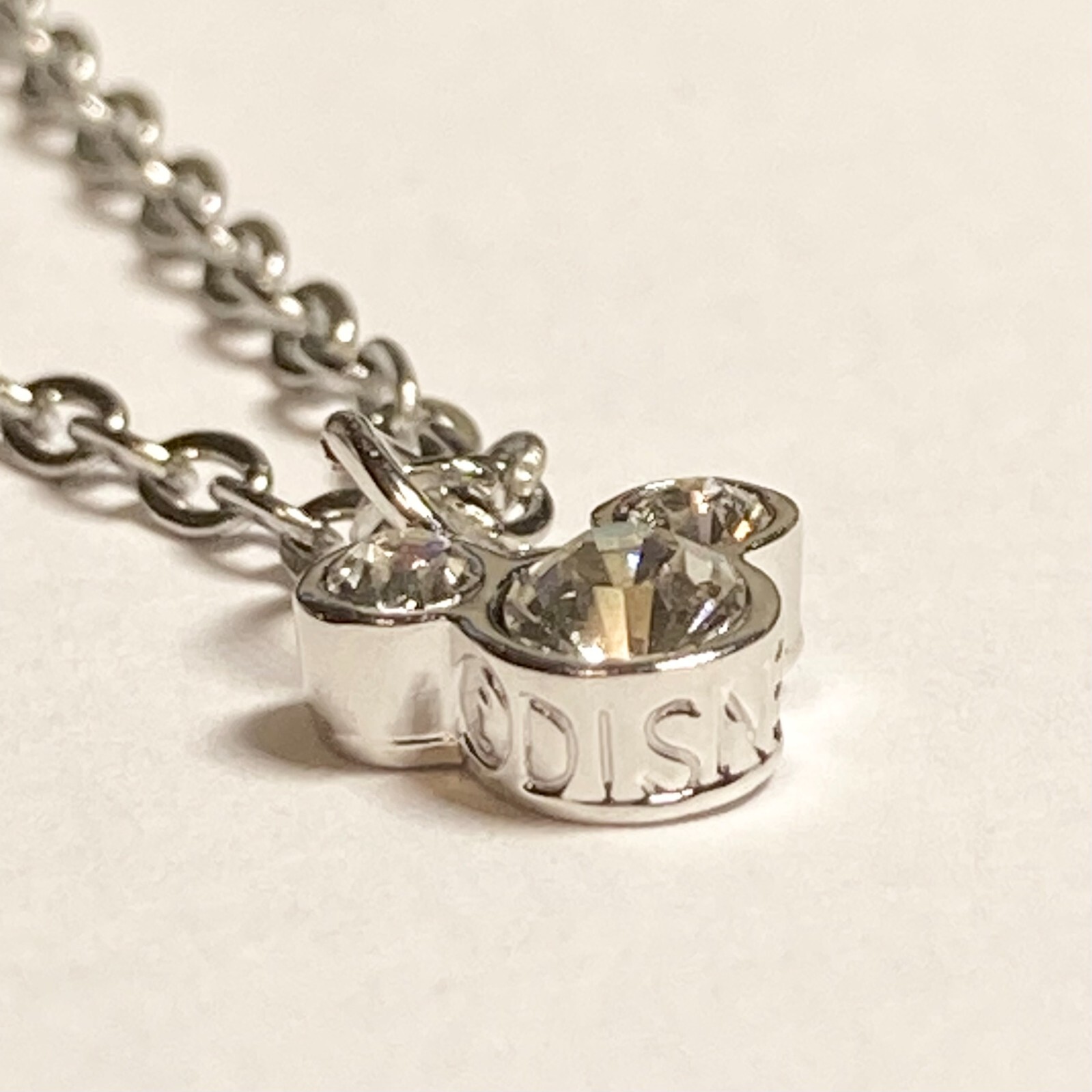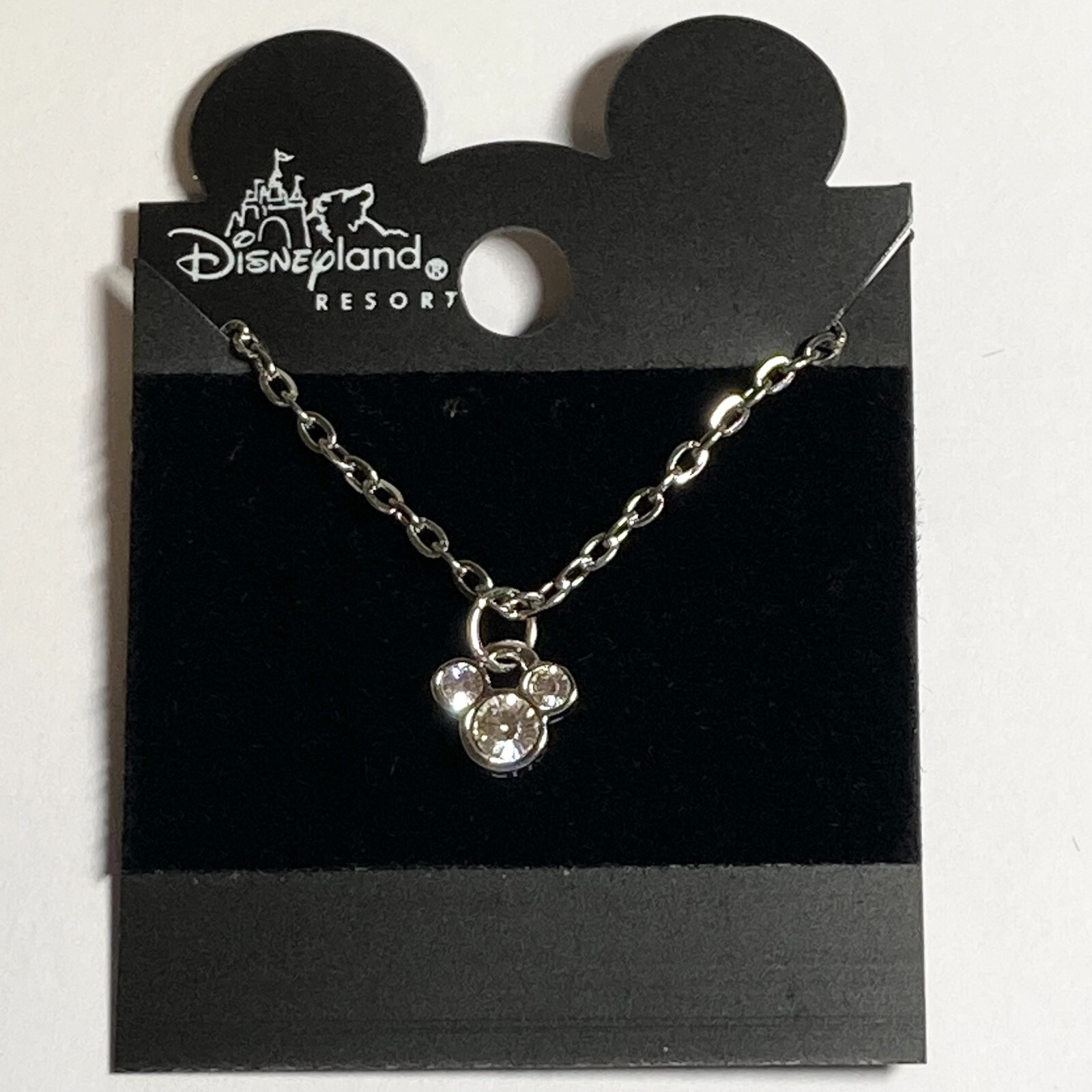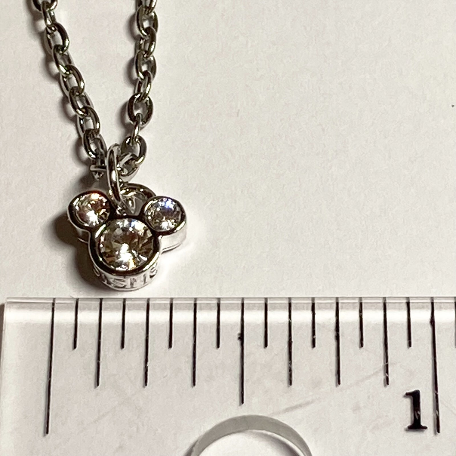 Vintage Disney Mickey Mouse Ears Necklace Dainty Crystal 18 Silver Plated
