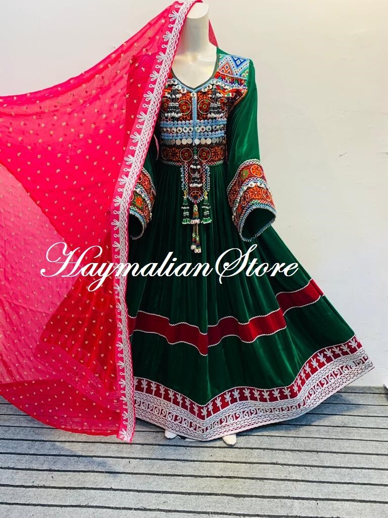 как выглядит AFGHAN DRESS, THREE Pieces Multi-Color Afghan Kuchi Dress With Charma Dozi Work, фото