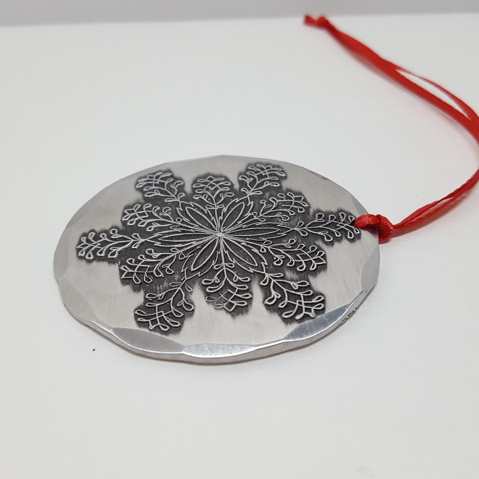 Wendell August Round Winter Holiday Snowflake Aluminum Ornament Handmade USA