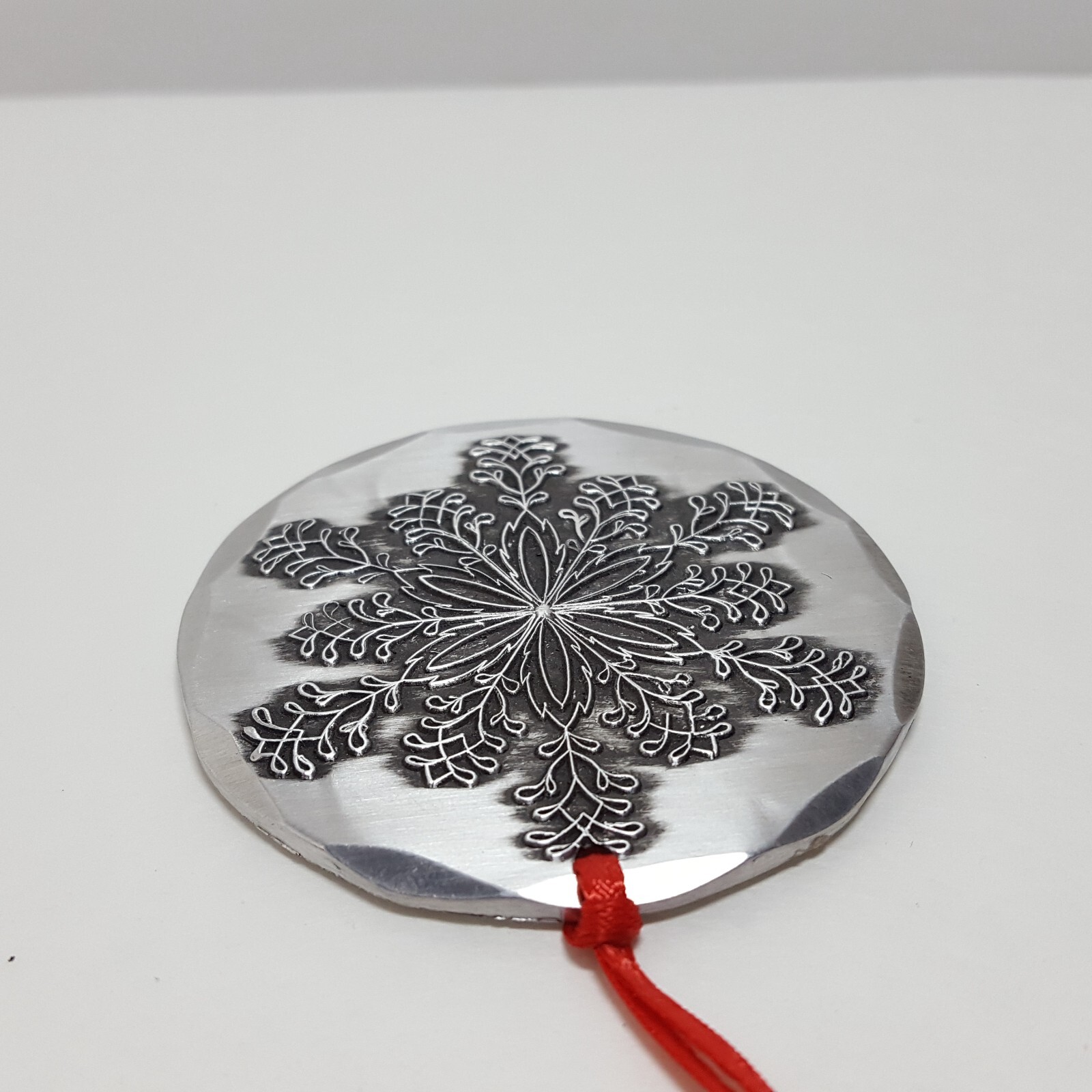 • Wendell August Round Winter Holiday Snowflake Aluminum Ornament Handmade USA