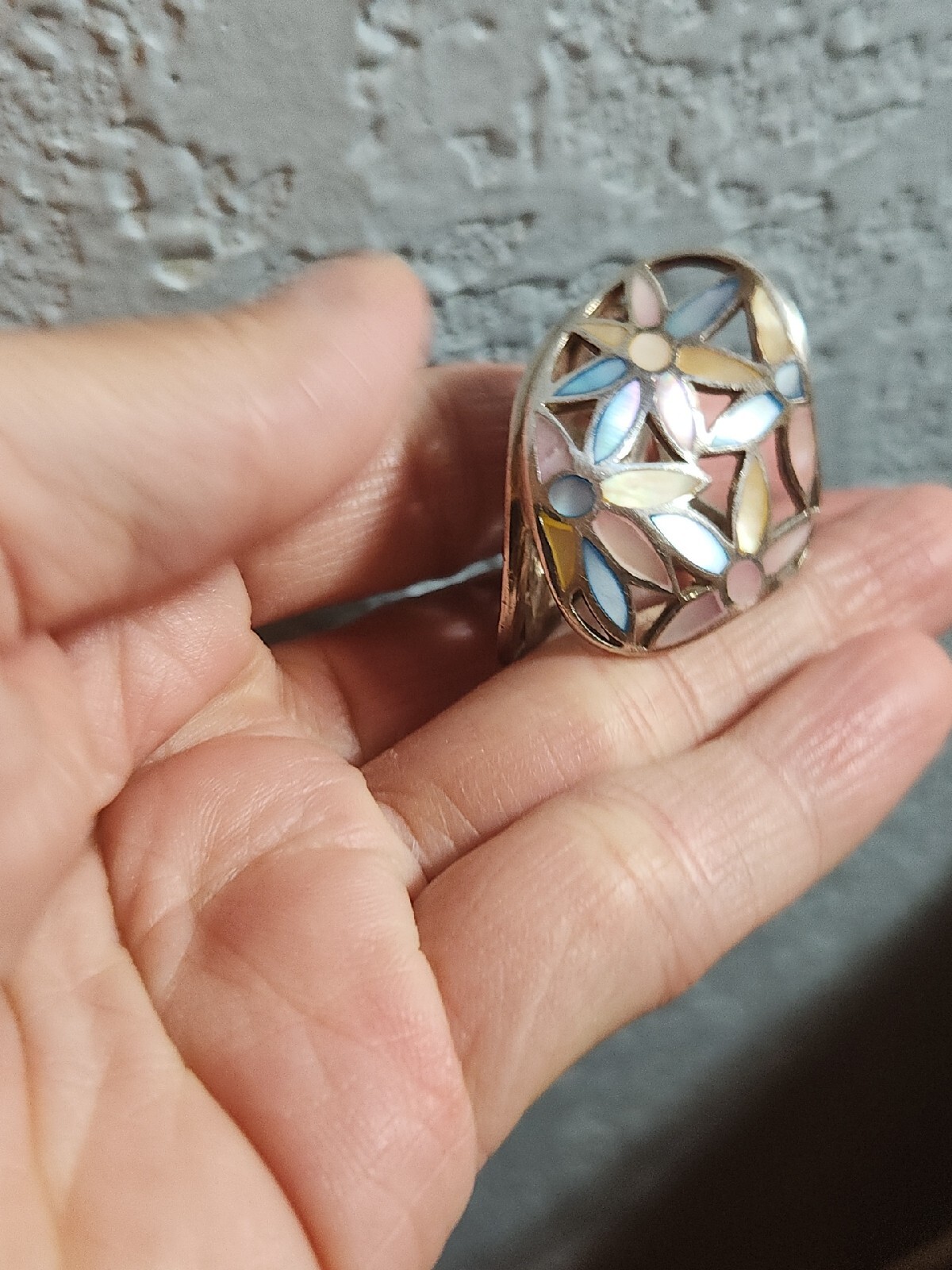 как выглядит 925 Sterling Silver Mother Of Pearl Inlay Ring 16.6 Gr/size 7 фото