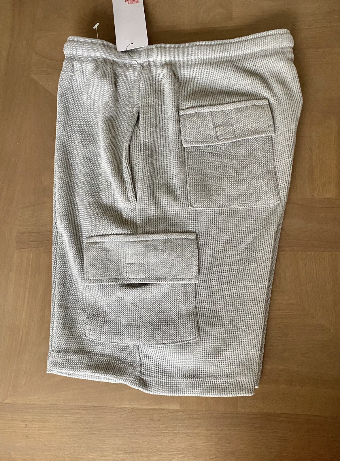 как выглядит NWT Fleece Factory Men s Cargo Drawstring Shorts Sz M Inseam 8 Gray фото