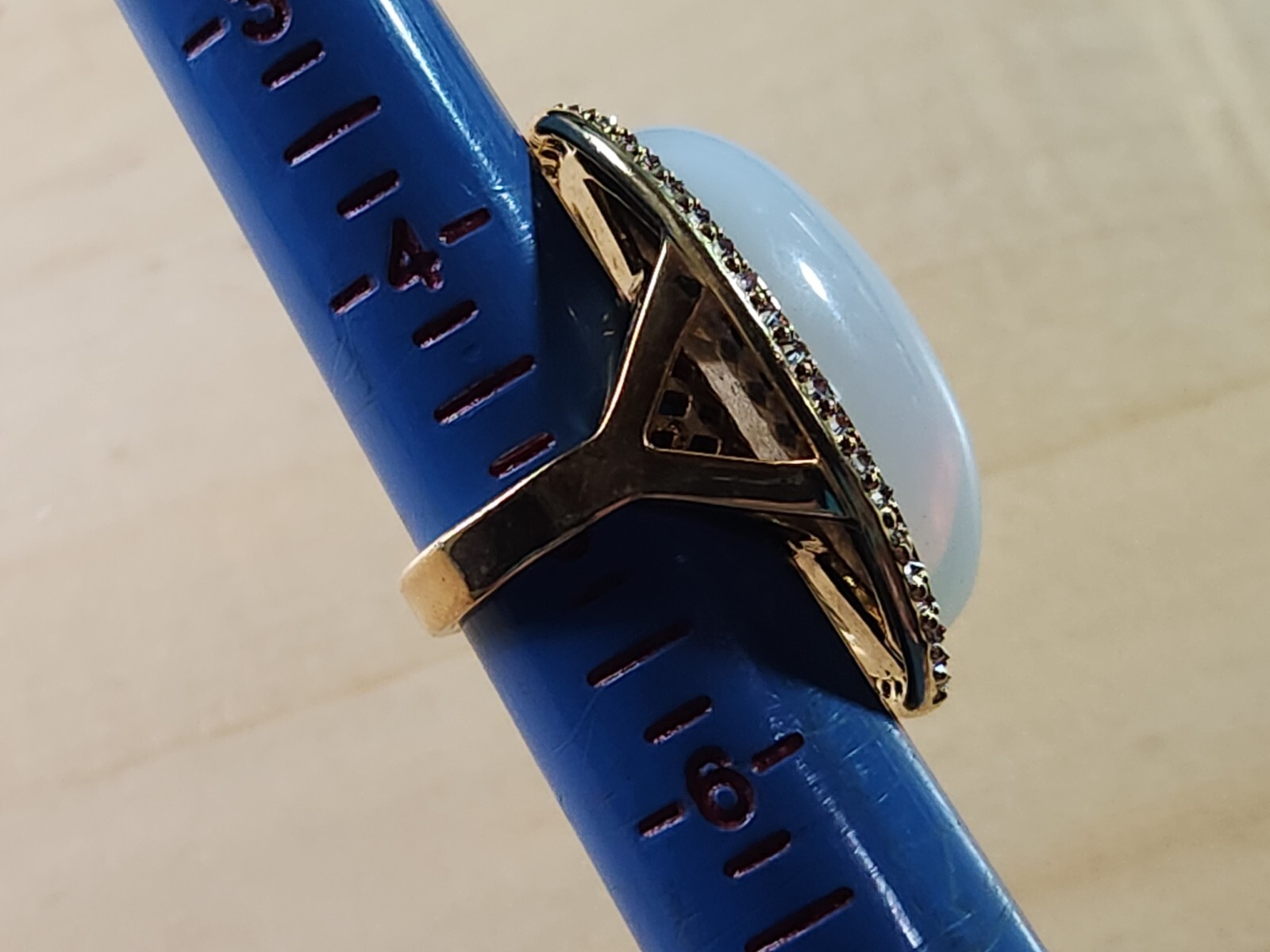 как выглядит Size 5 Sterling Silver Gold Accented Vermeil Ring LARGE Creamy White Stone фото