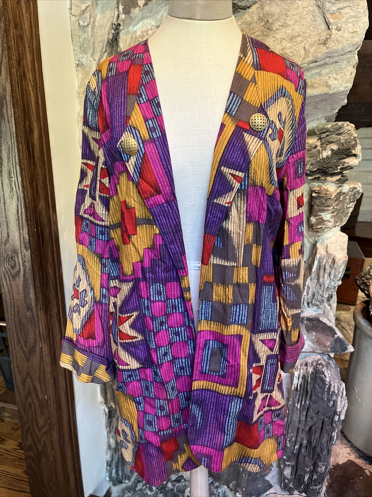 Vintage Lady Carol Lightweight Blazer Belted Jacket Multicolor Size 10 Made USA
