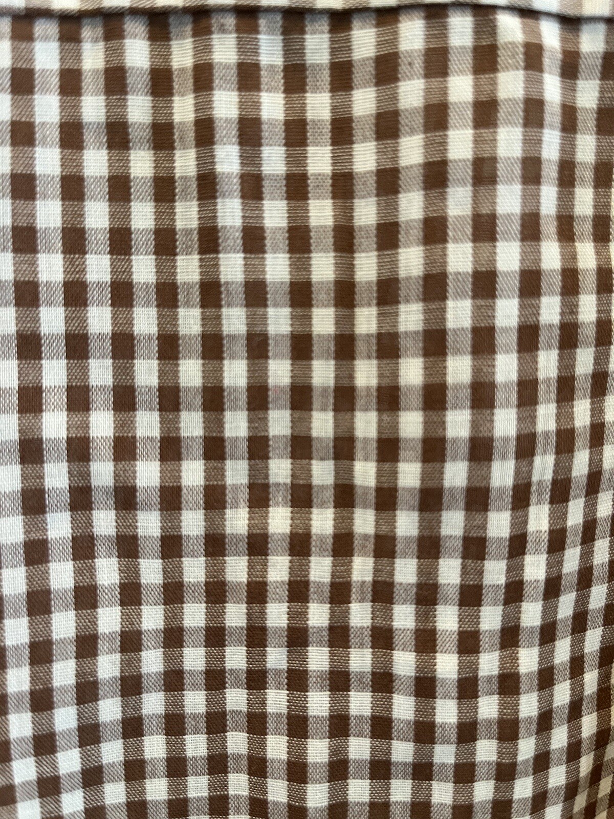 VTG 1960s Sm/Med Brown/White Gingham Button Down Shirt Loop Collar Western
