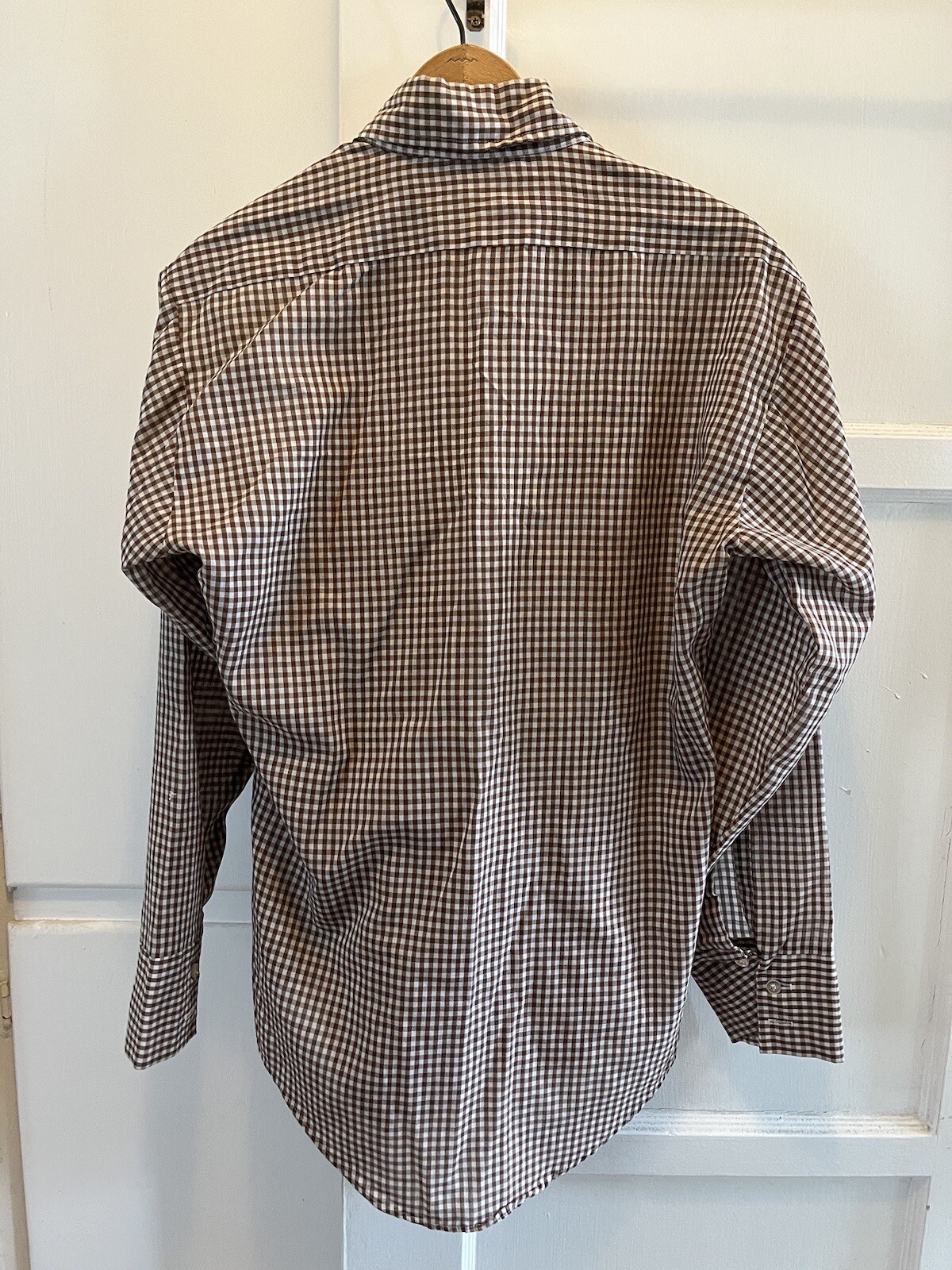 как выглядит VTG 1960s Sm/Med Brown/White Gingham Button Down Shirt Loop Collar Western фото
