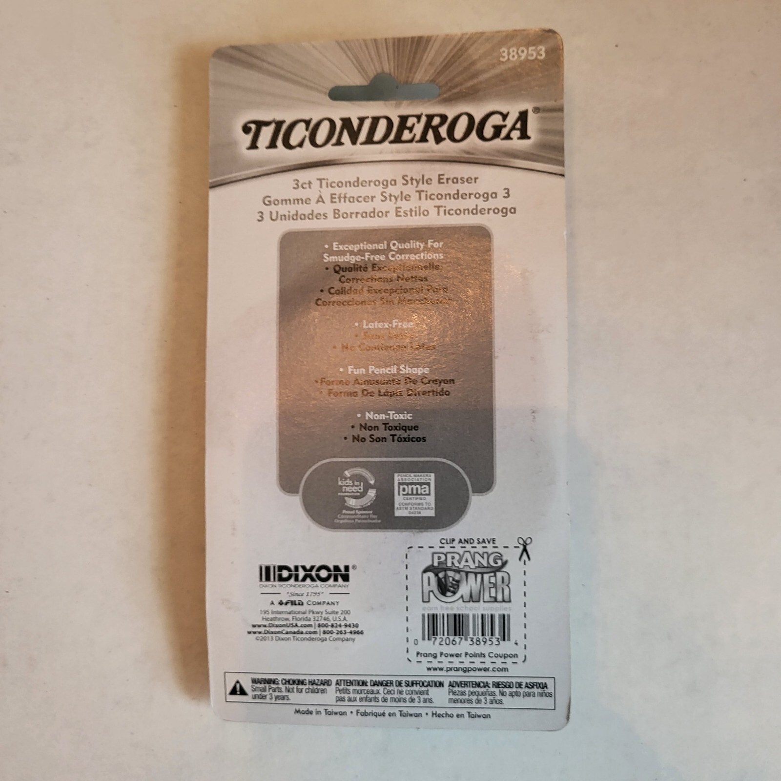 Ticonderoga Erasers, Pencil Shaped, Latex Free, Yellow 3 ct packs