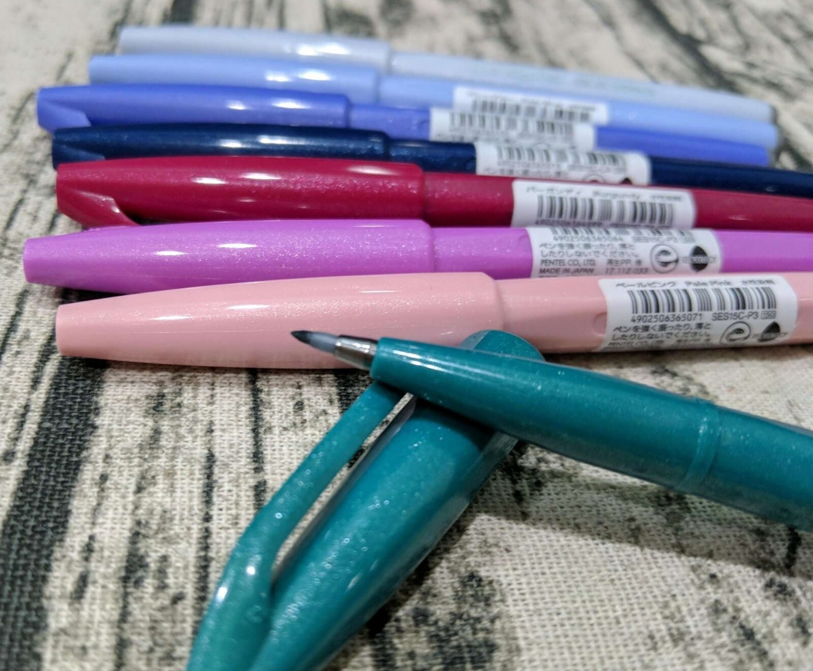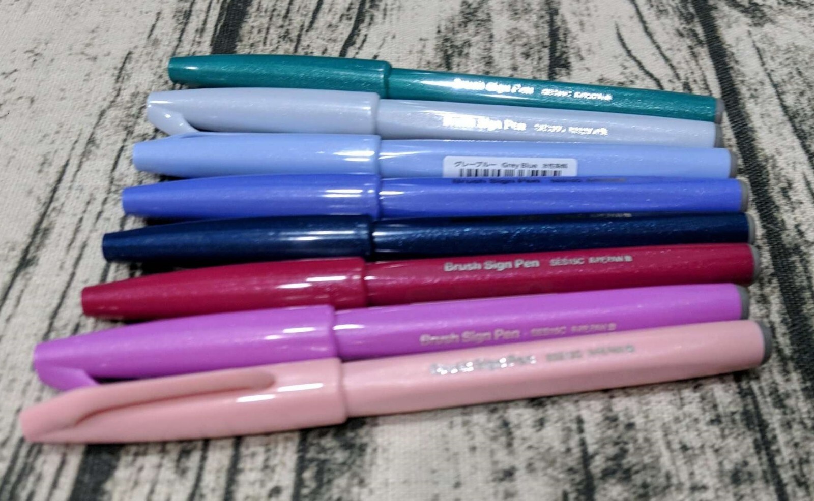 8x Pentel Fude Touch Brush Sign Pens Pastel Soft Color Turquoise Blue Violet Set