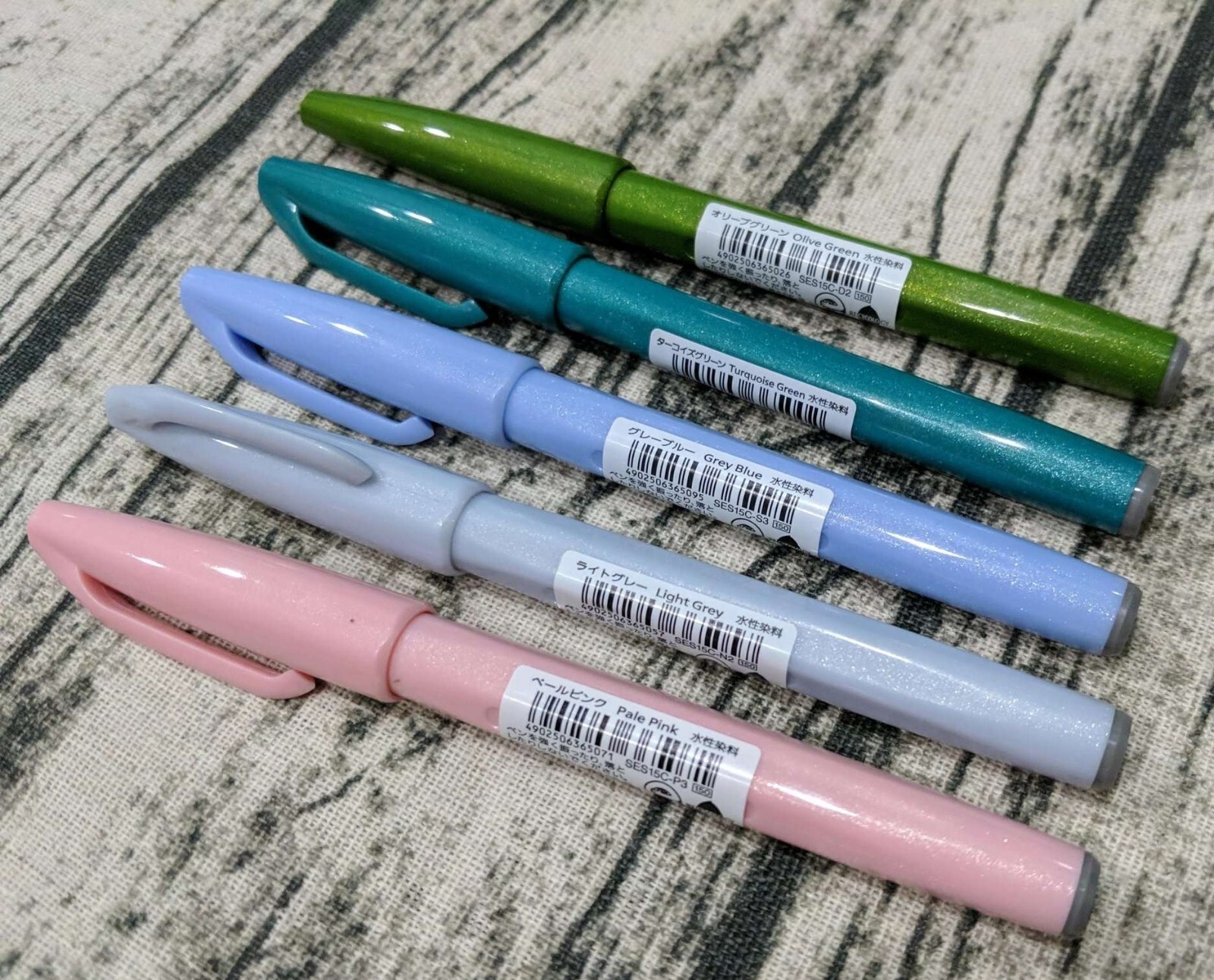 5x Pentel Fude Touch Brush Sign Pens Pastel Color Olive Green Blue Violet Pink
