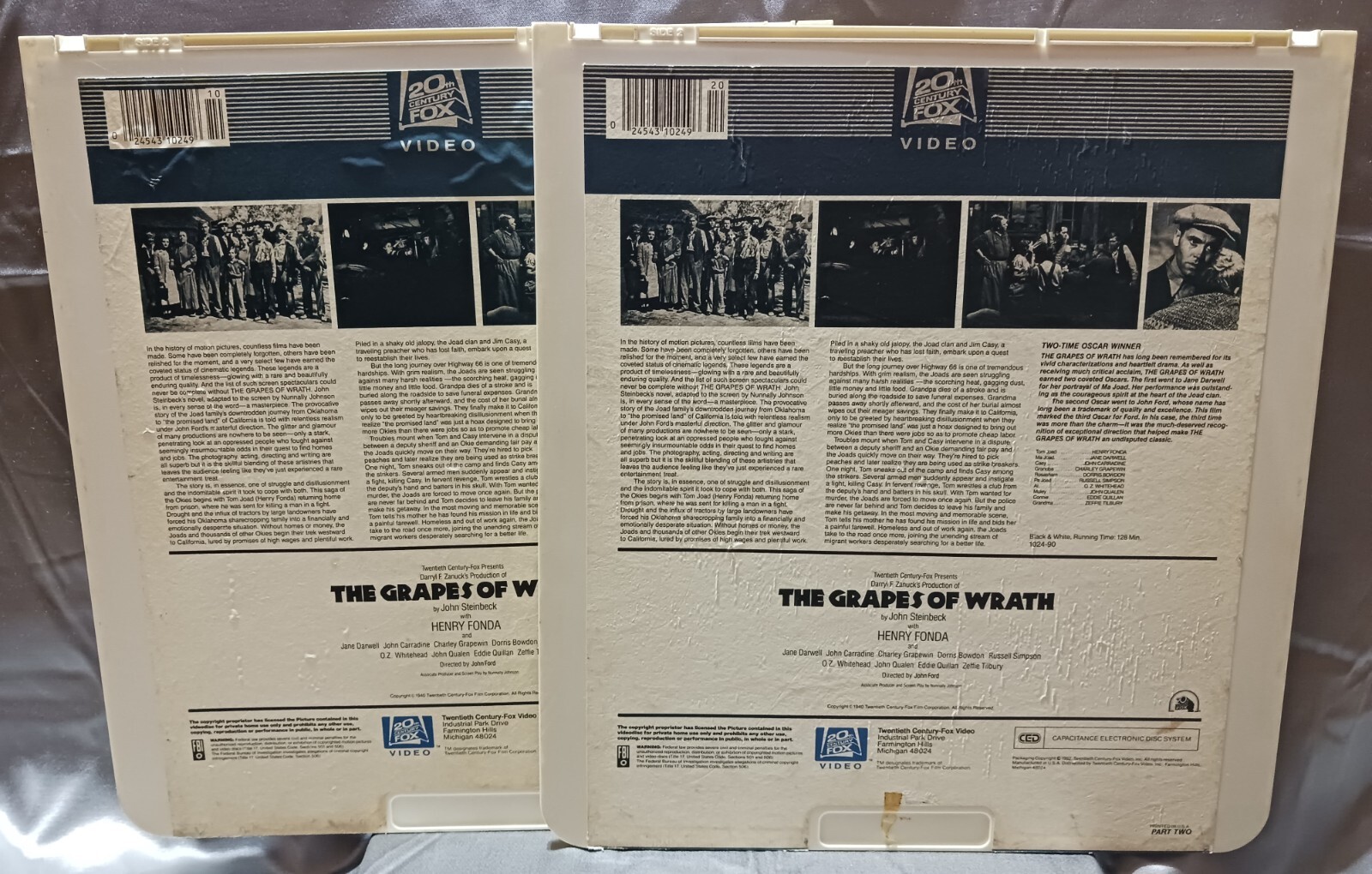 20th Century Fox Video- The Grapes of Wrath TWO- CED Disc Set Pre-Owned 1982