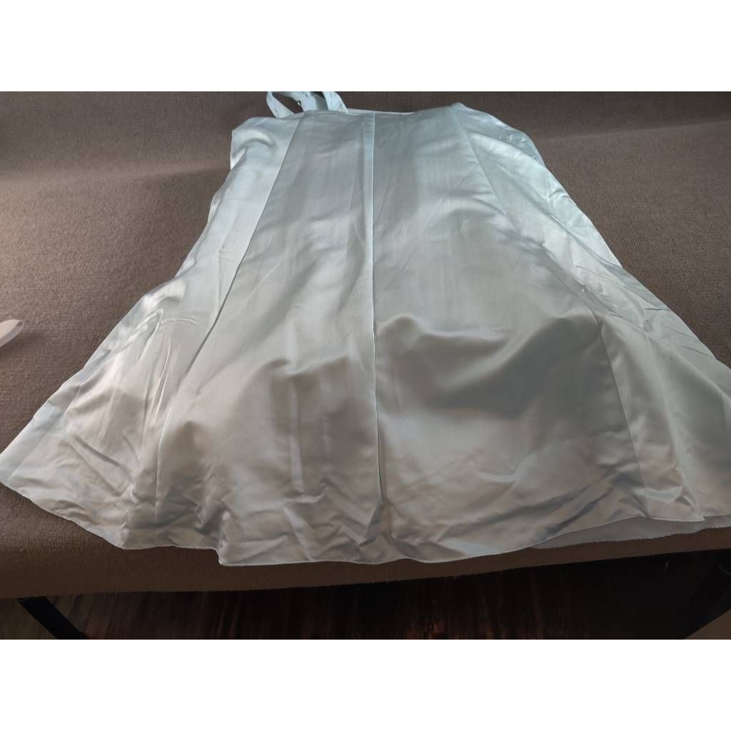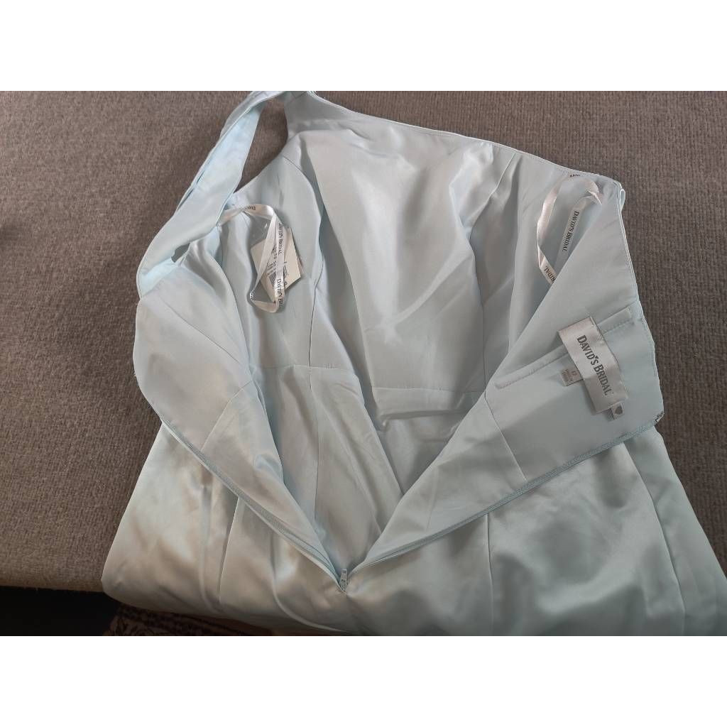 как выглядит Davids Bridal Womens Mermaid Dress Gown Blue Ruched Maxi Strap Bling 12 New фото
