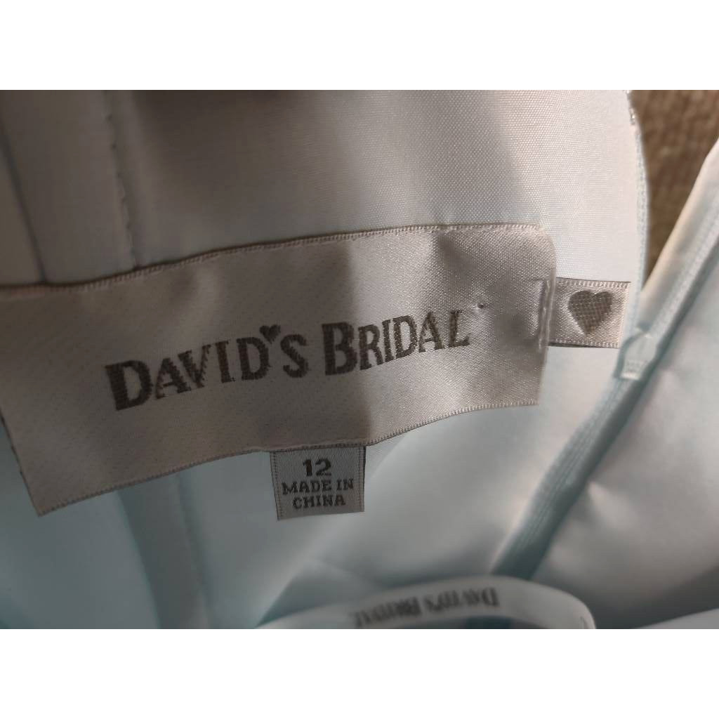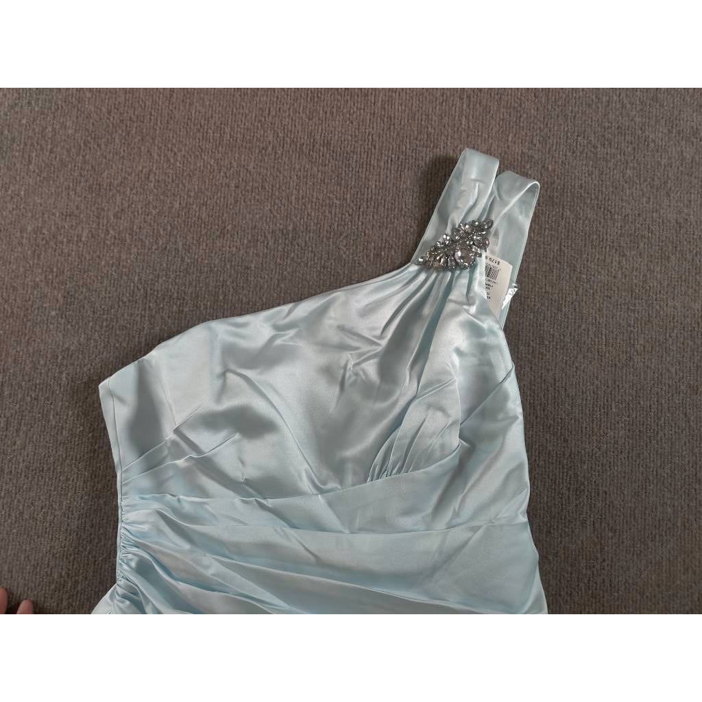Davids Bridal Womens Mermaid Dress Gown Blue Ruched Maxi Strap Bling 12 New