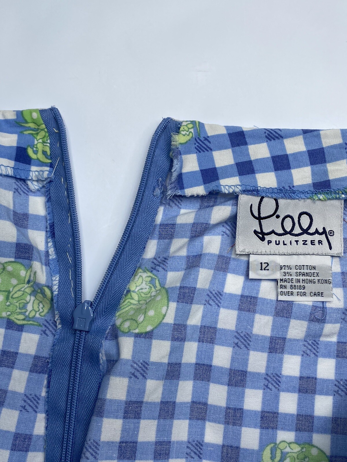 Lilly Pulitzer Shorts Sz 12 Blue Gingham Check Hermit Crab Mid Rise 3 VTG Y2K