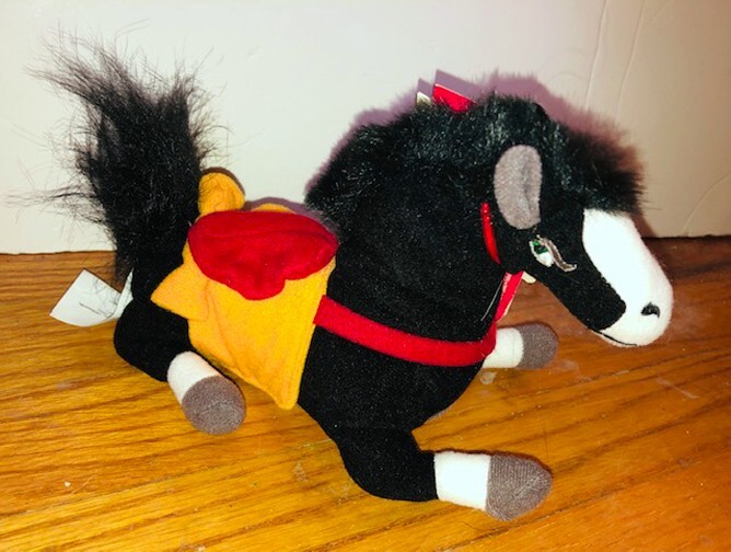 Vintage Disney Store Mulan Khan Black Horse Bean Bag Plush Stuffed Animal NWT