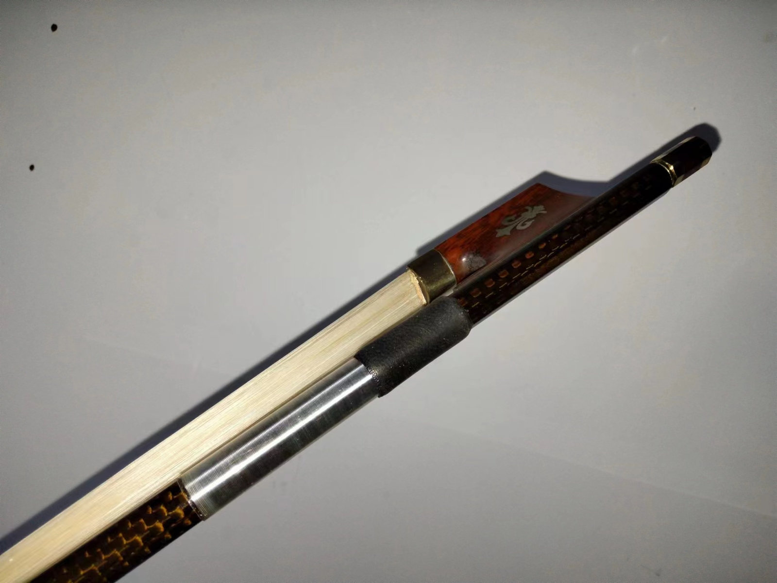 как выглядит 1PC Coffee Color Violin Bow Carbon Stick Snakewood Frog White Mongolia Hair фото
