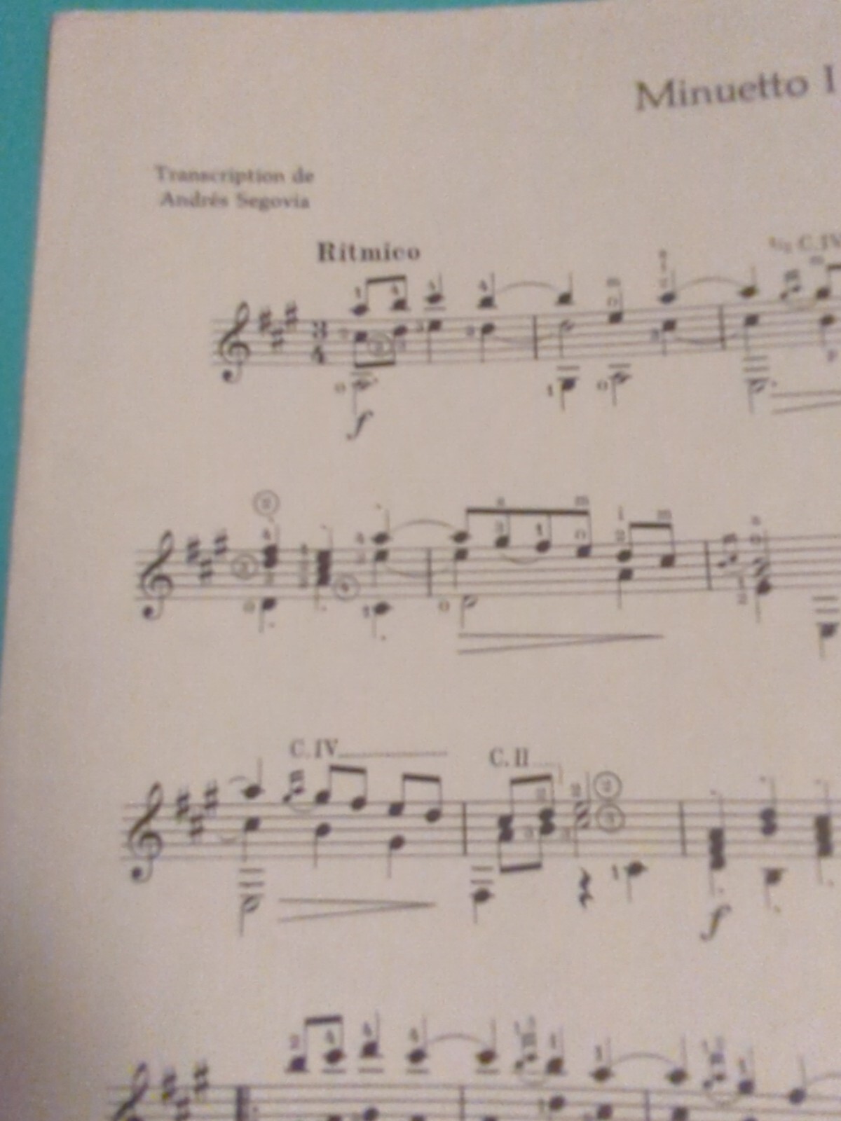 Jean P.Rameau 2 Minuets For Classical Guitar Rare Vintage Sheet Music