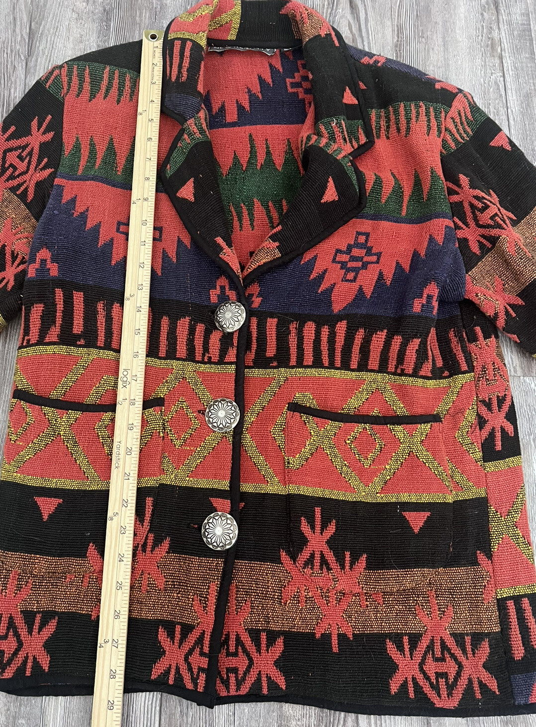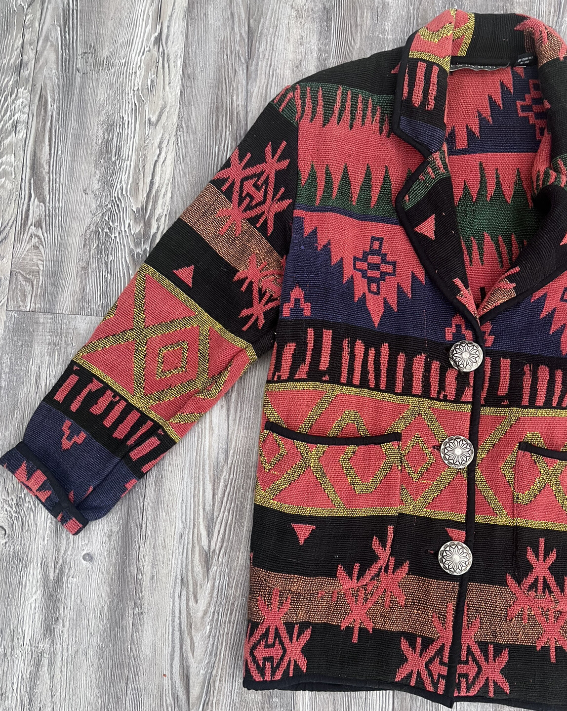 как выглядит Vintage New Identity Southwest Tapestry Jacket Aztec Size Large K1 фото