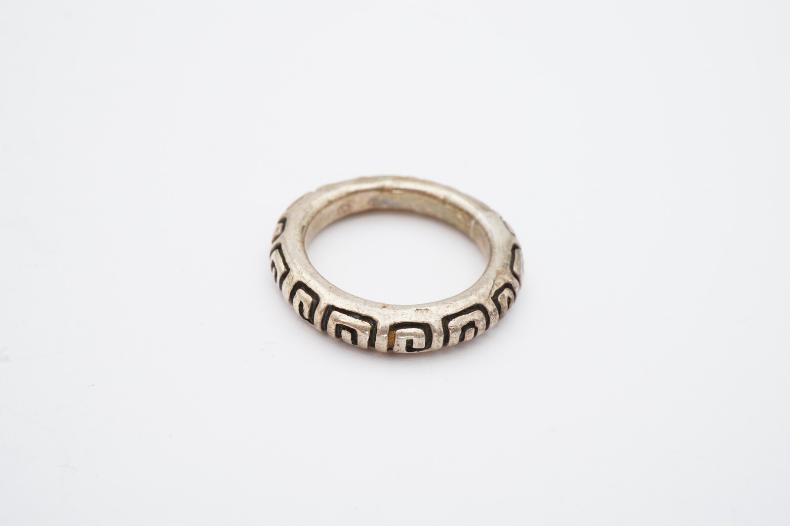 как выглядит Vintage Mexico Sterling Silver 925 Greek Key Ring Band Size 8 фото