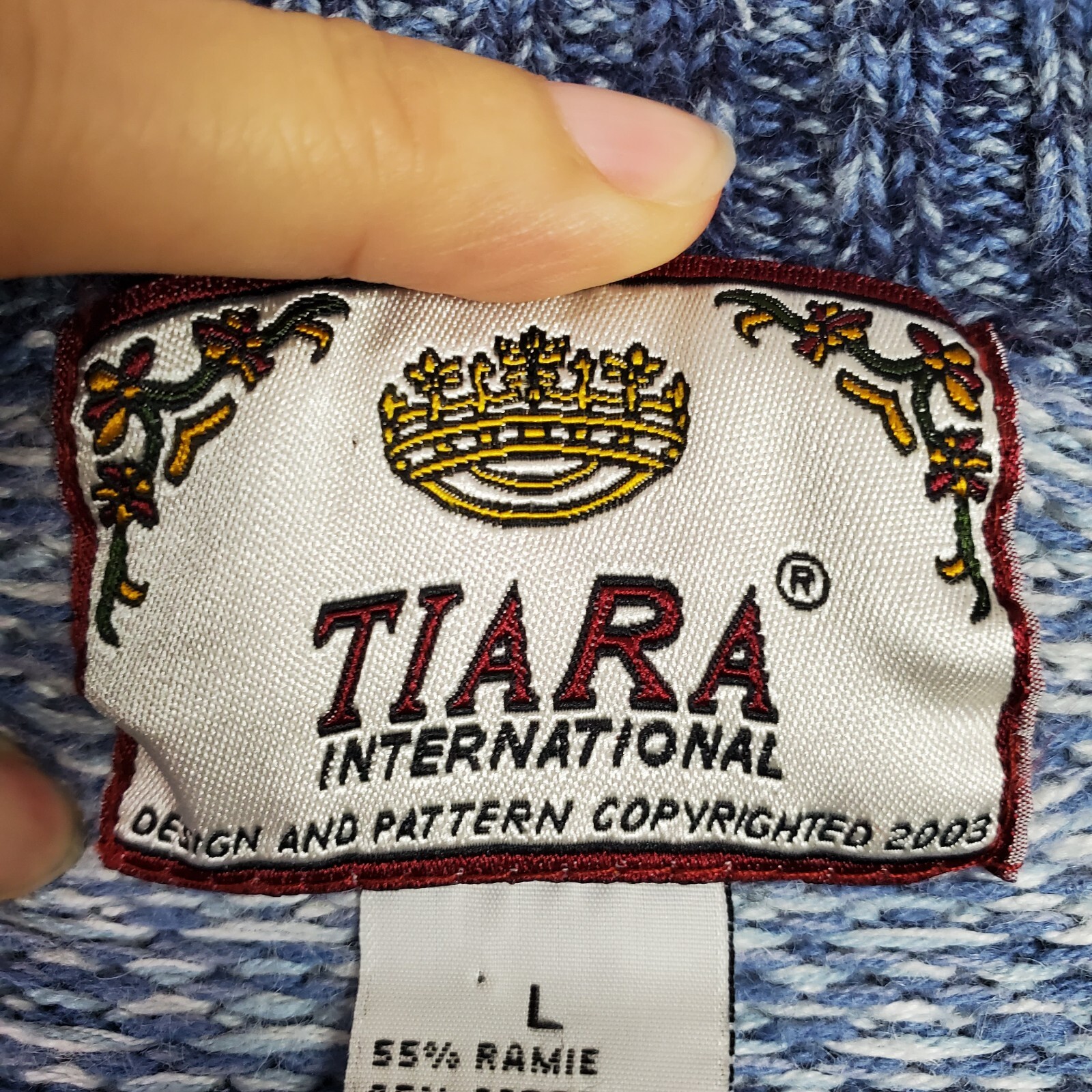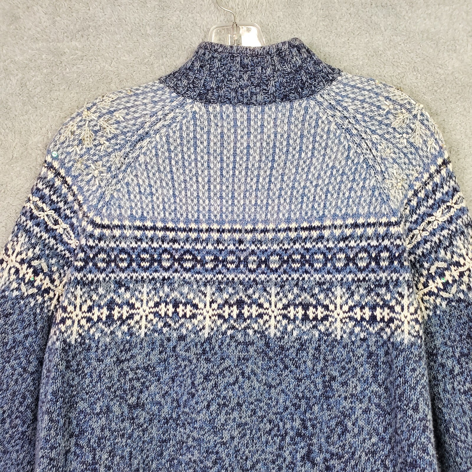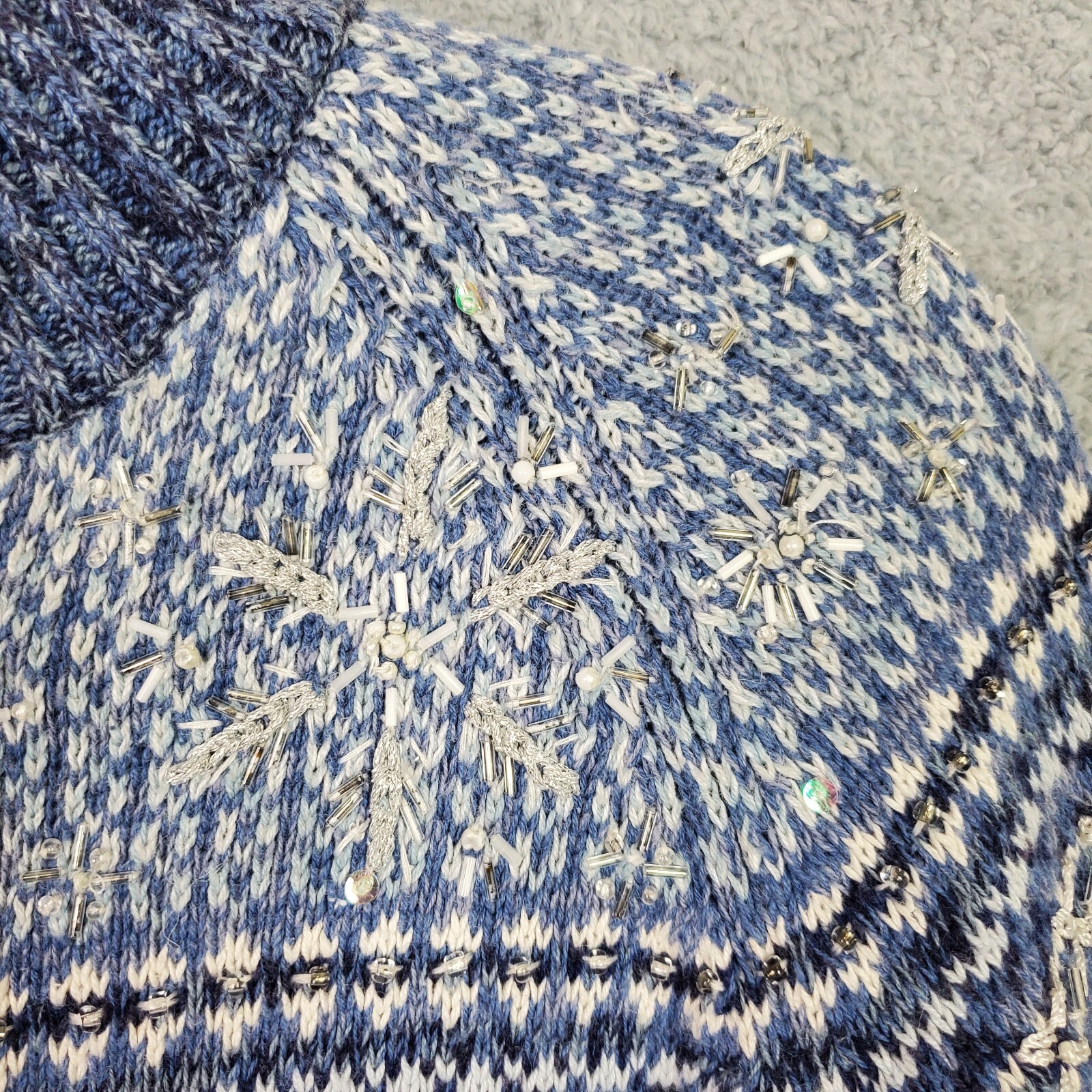 как выглядит Vtg Tiara International Womens Cardigan L Blue Fair Isle Beaded Crhistmas Zip фото