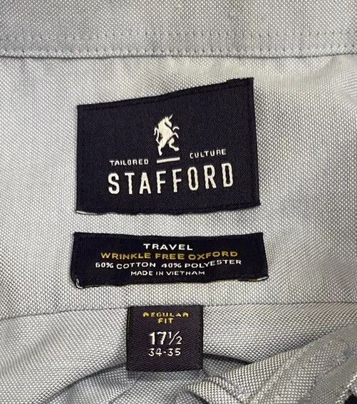 Lot of 3 Stafford Long Sleeve Button Up Dress Shirts Size 17 17.5 34/35 EUC