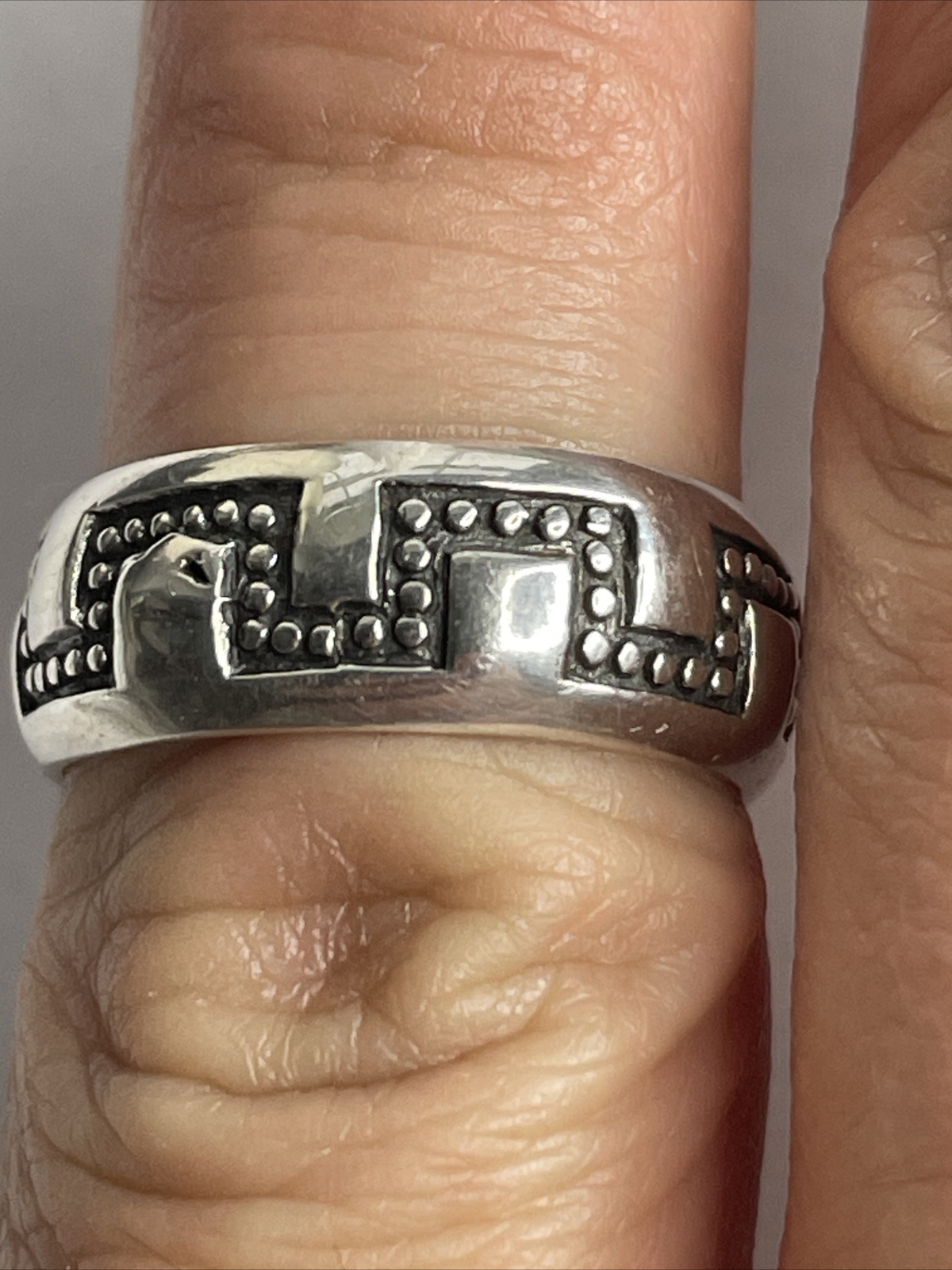 Vintage Solid Sterling Silver Southwestern Style Pattern Ring Band Sz. 7