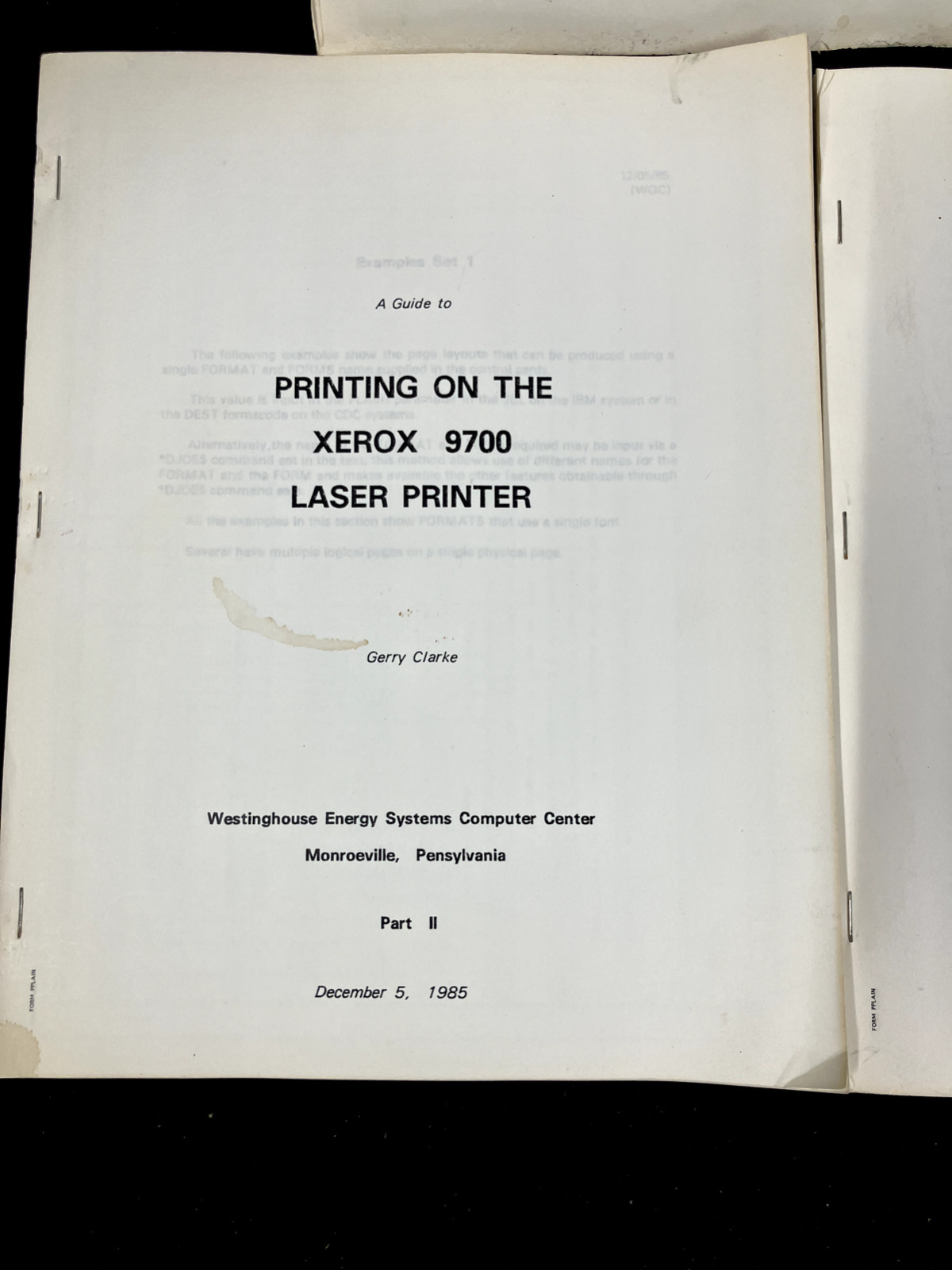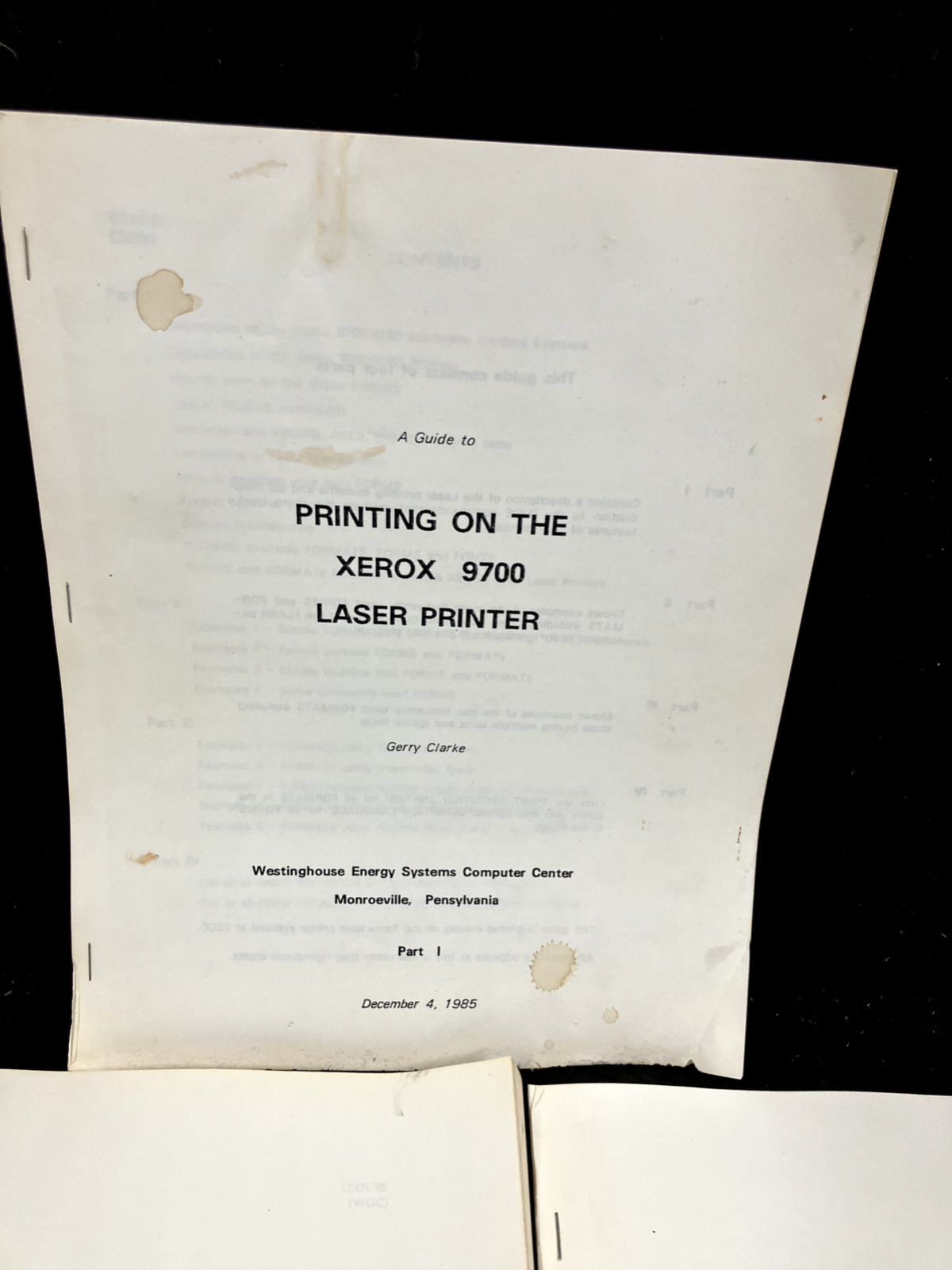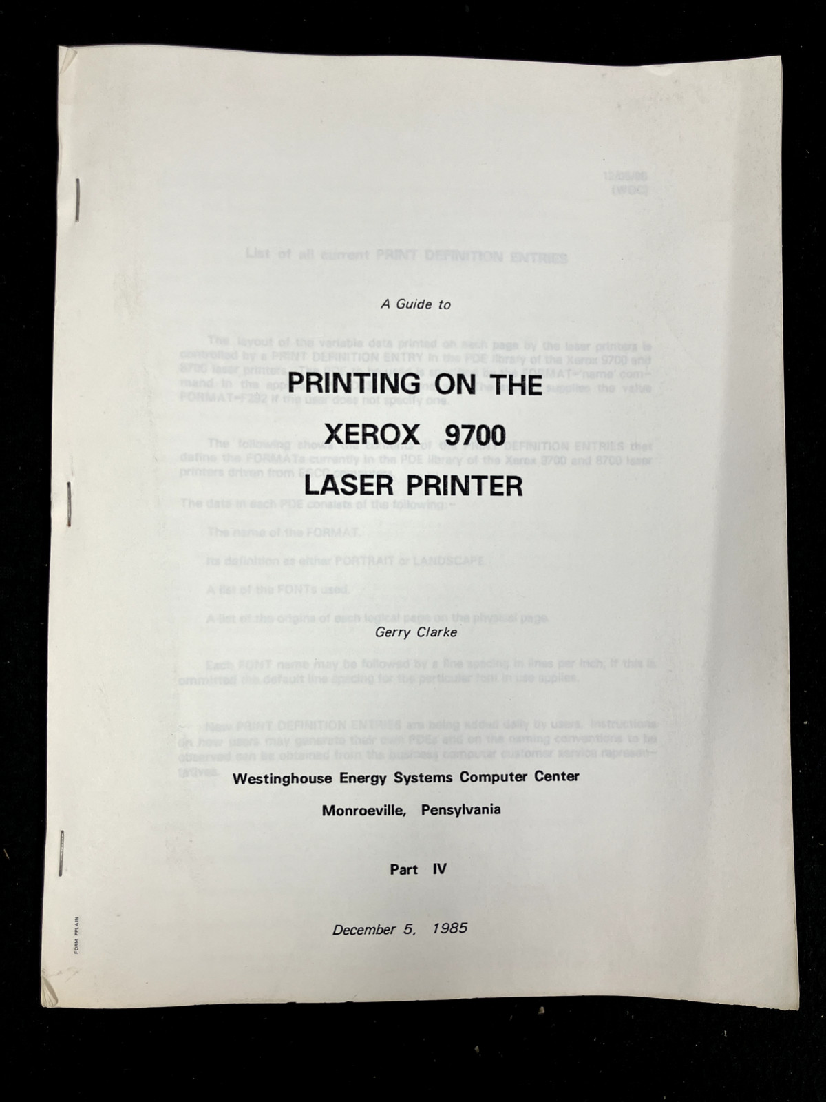 PRINTING ON THE XEROX 9700 LASER PRINTER GUIDE PART 1,2,4 BY GERRY CLARK, 1985