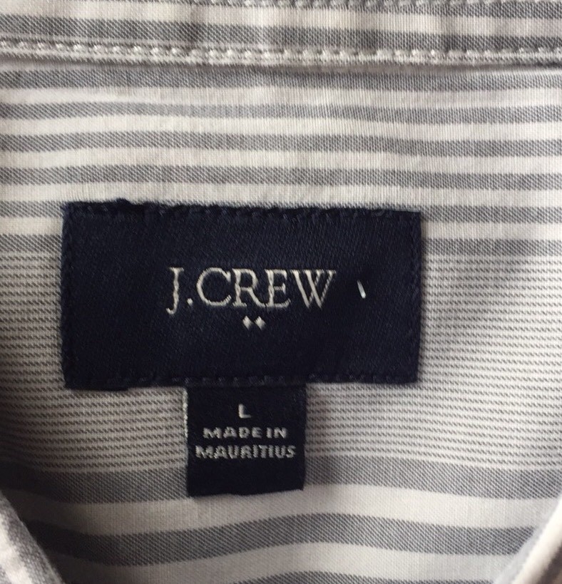 J.Crew Men Dress Shirt Long Sleeve Gray Large Stripe White Long Sleeve Cotton