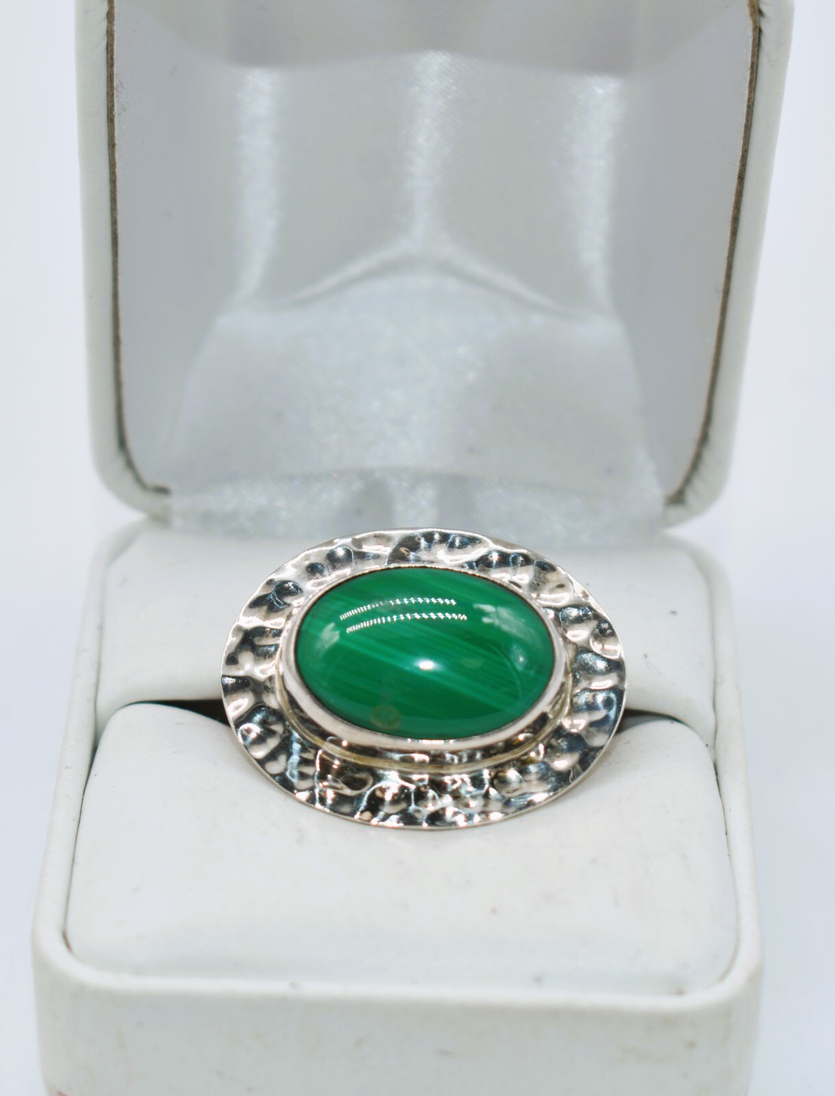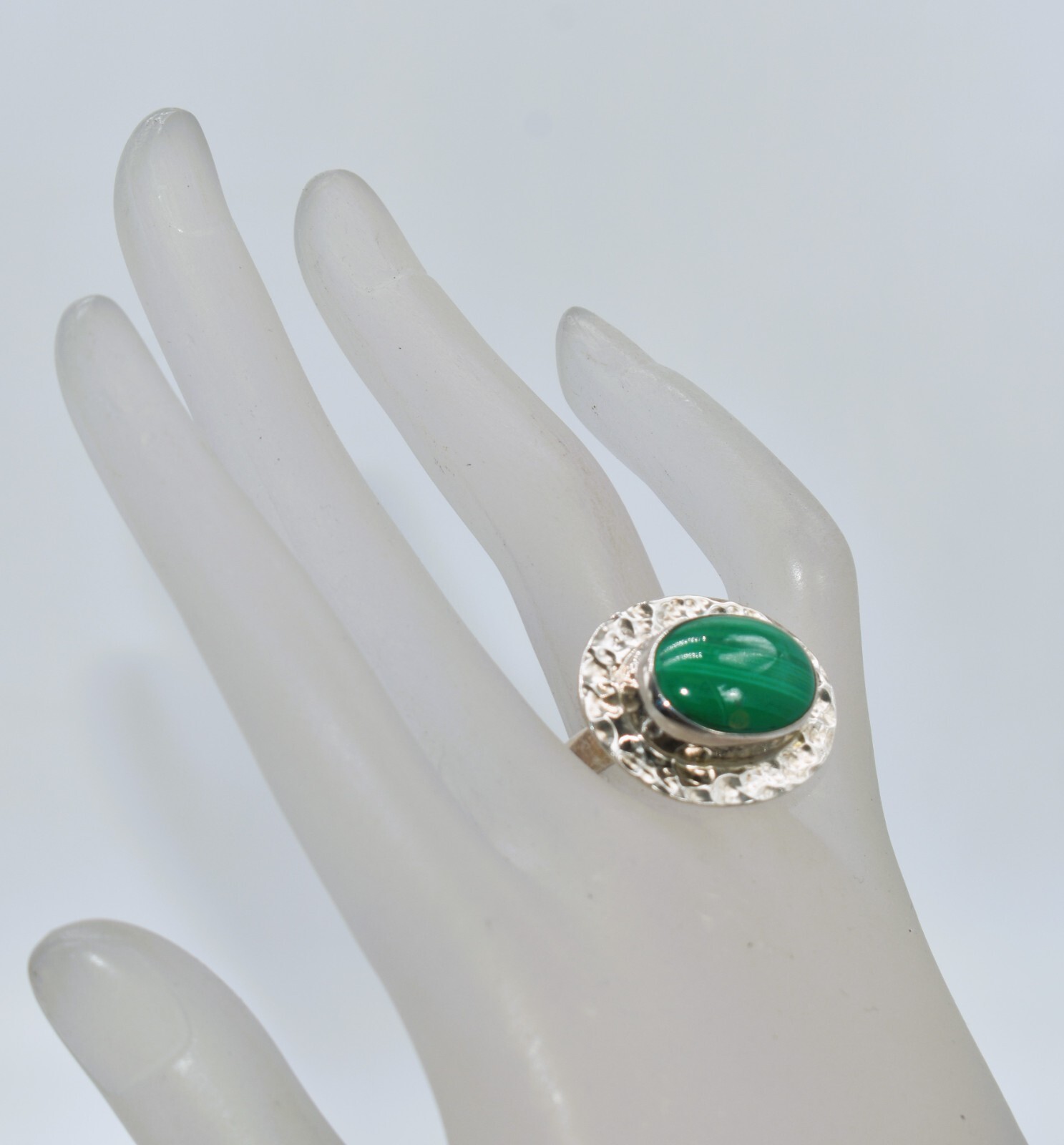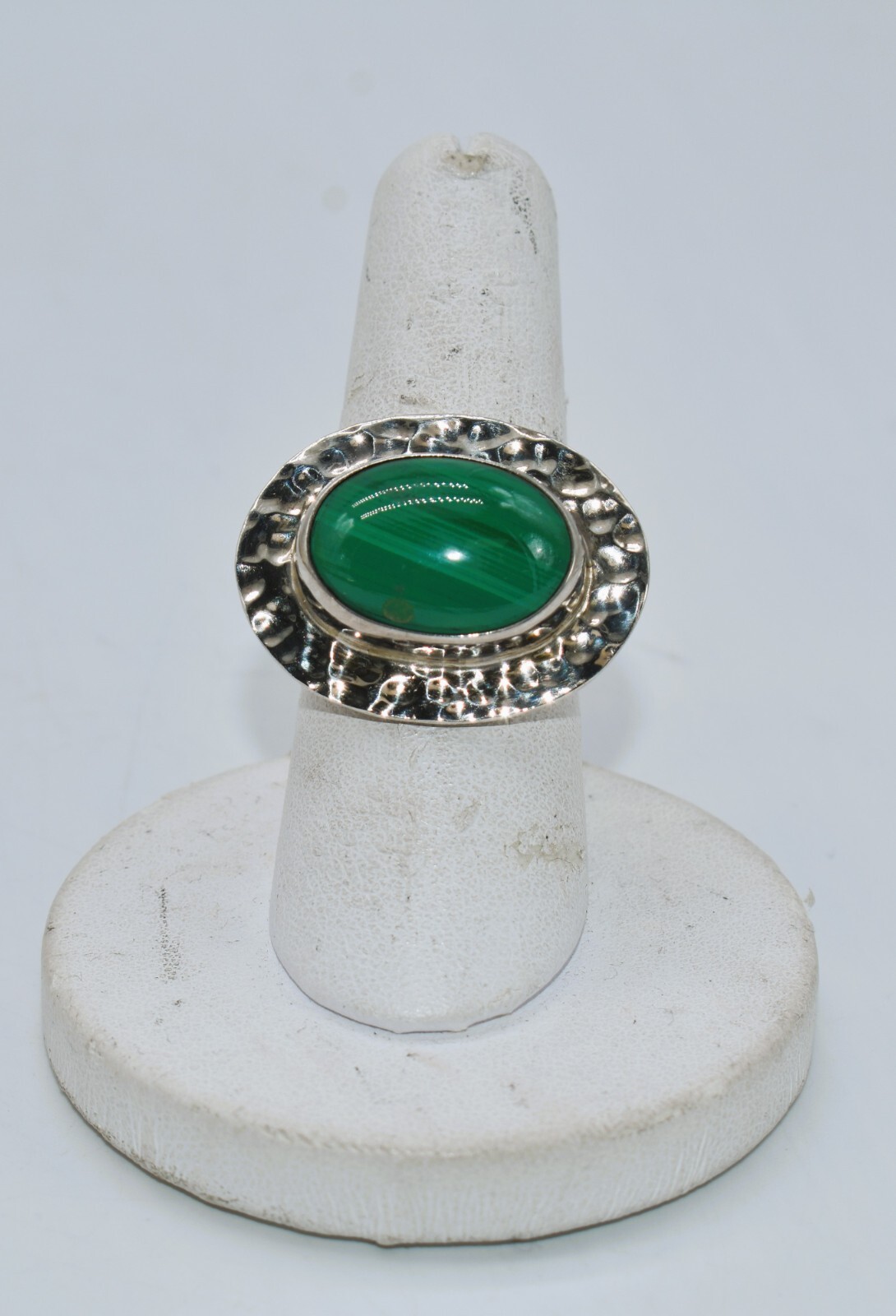 Malachite Hammered Sterling Silver Mexican Modernist Ring Size 8