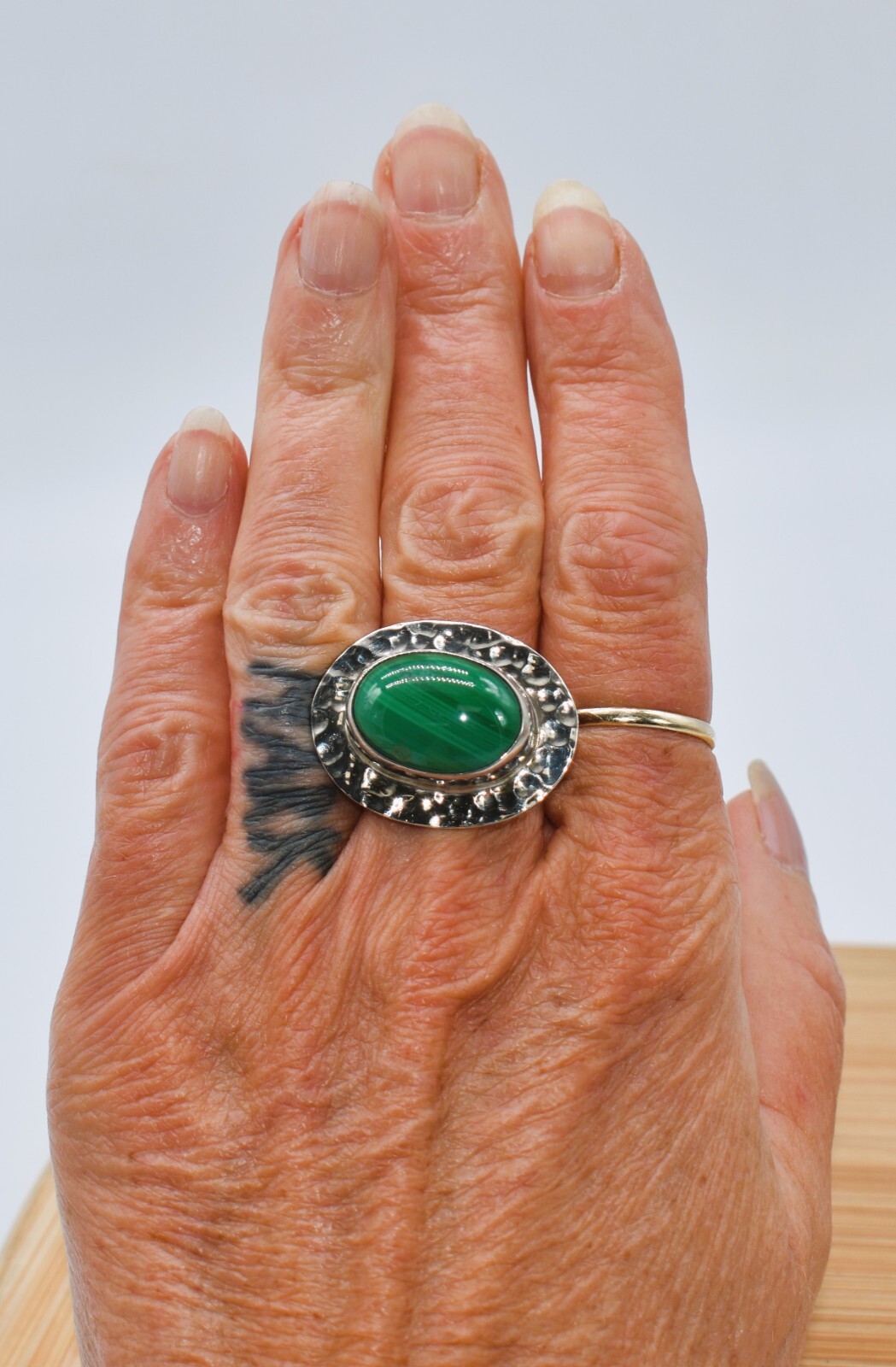 как выглядит Malachite Hammered Sterling Silver Mexican Modernist Ring Size 8 фото