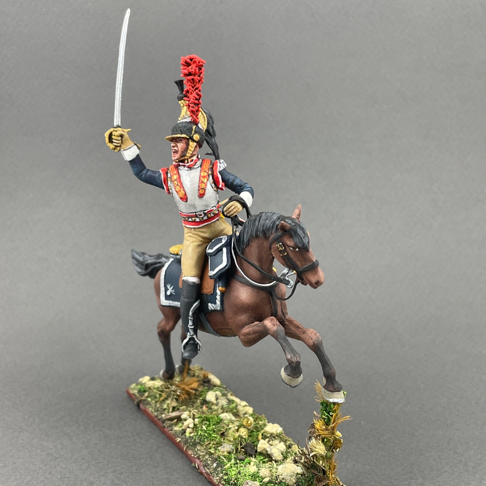 Painted Napoleonic tin toy soldier 1/30, French Officer Cuirassier VID SOLDIERS