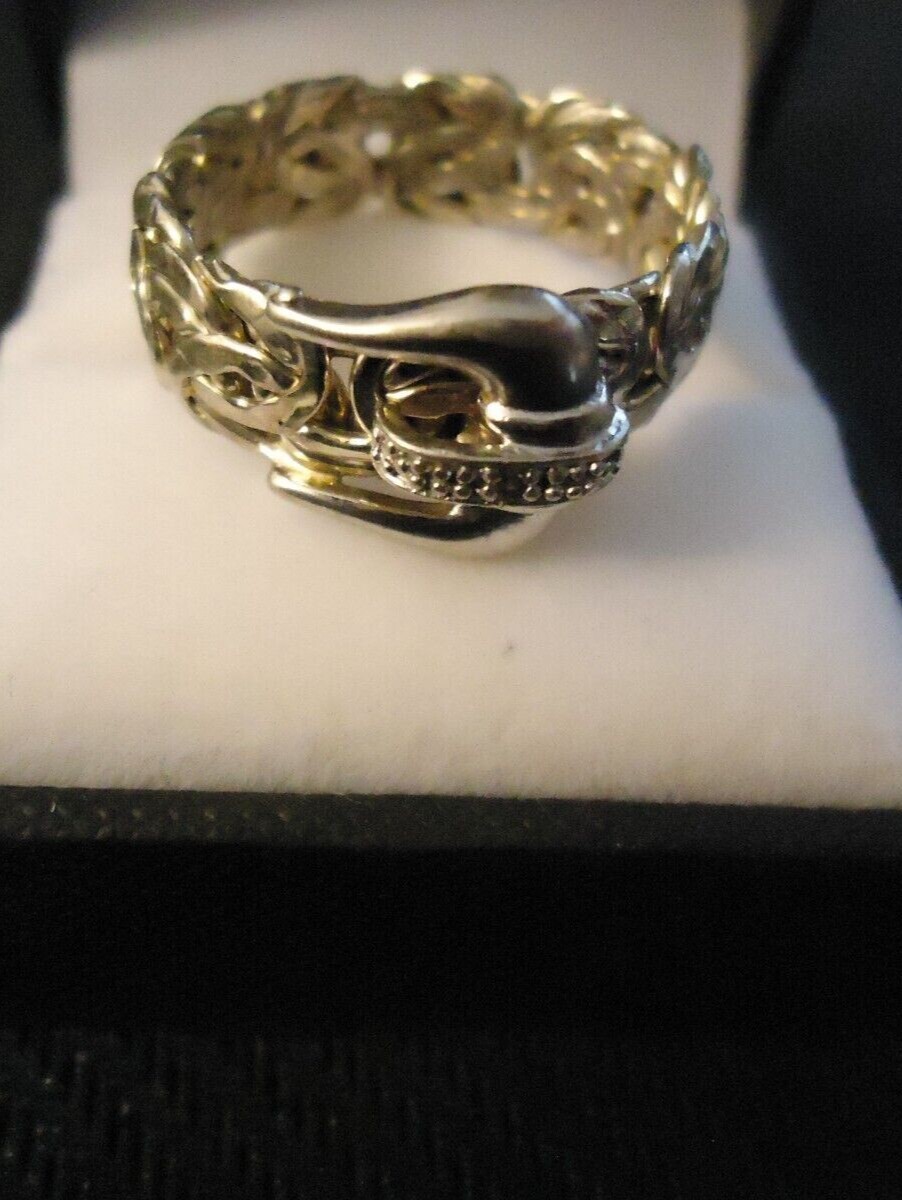 как выглядит Sterling Silver Braided Band "Belt" Ring w/ Rhinestone Size 9 фото