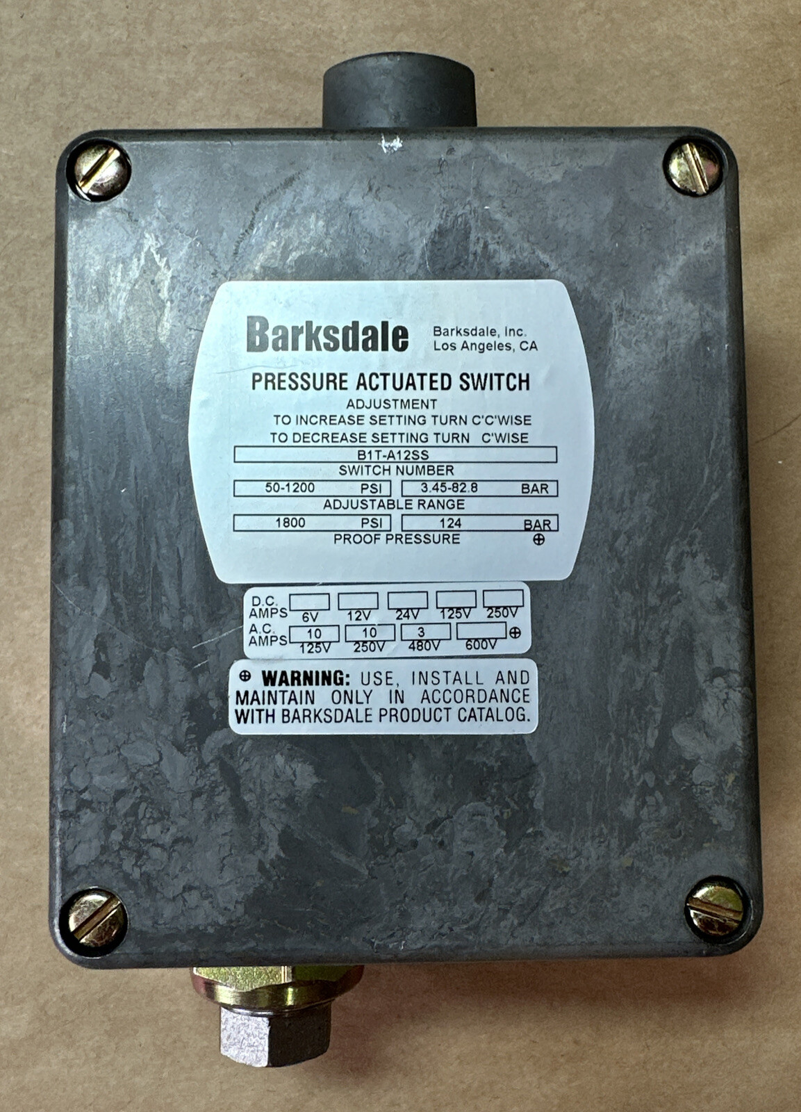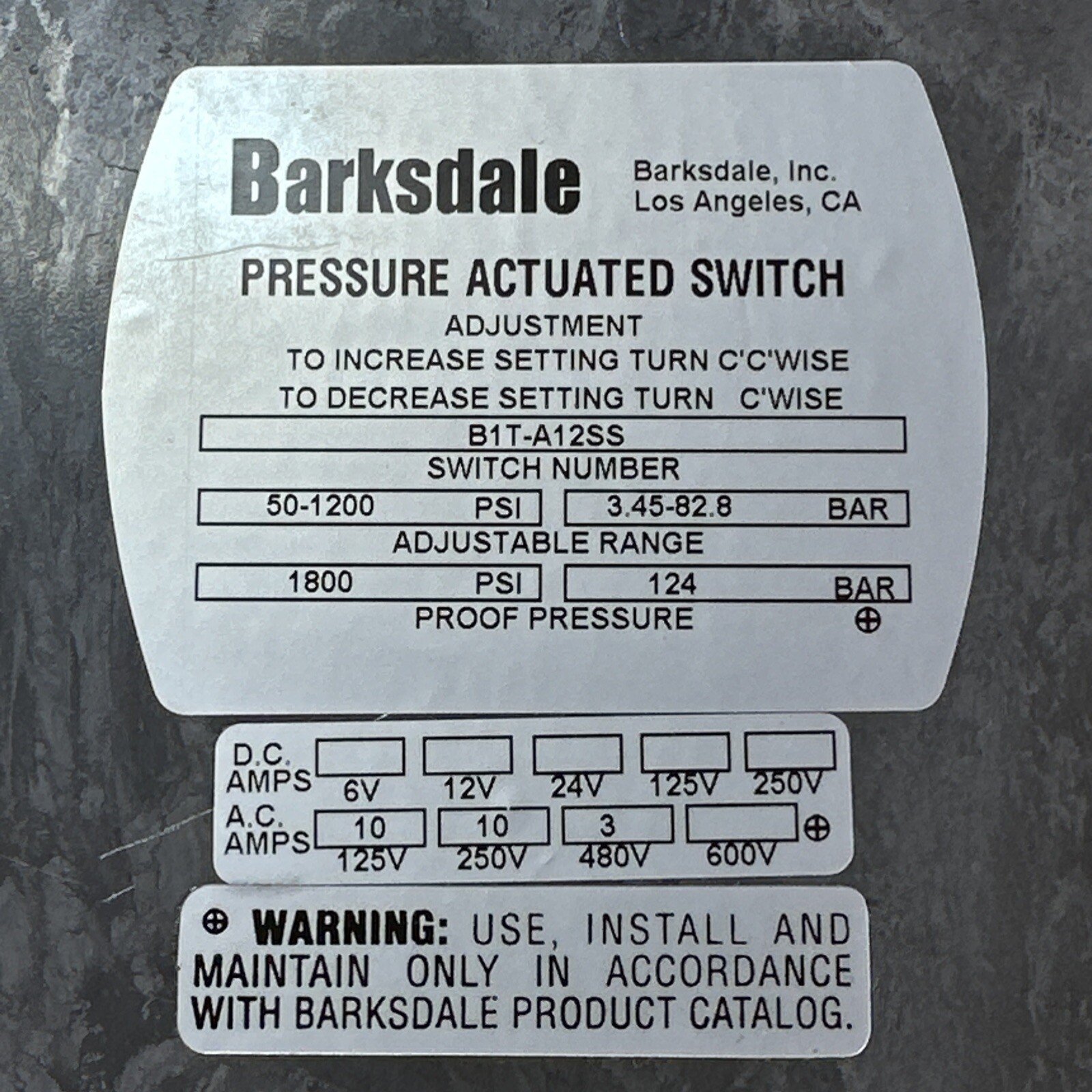 BRAND NEW- Barksdale Bourdon Tube Pressure Switch 50-1200PSI, 1800PSI MAX