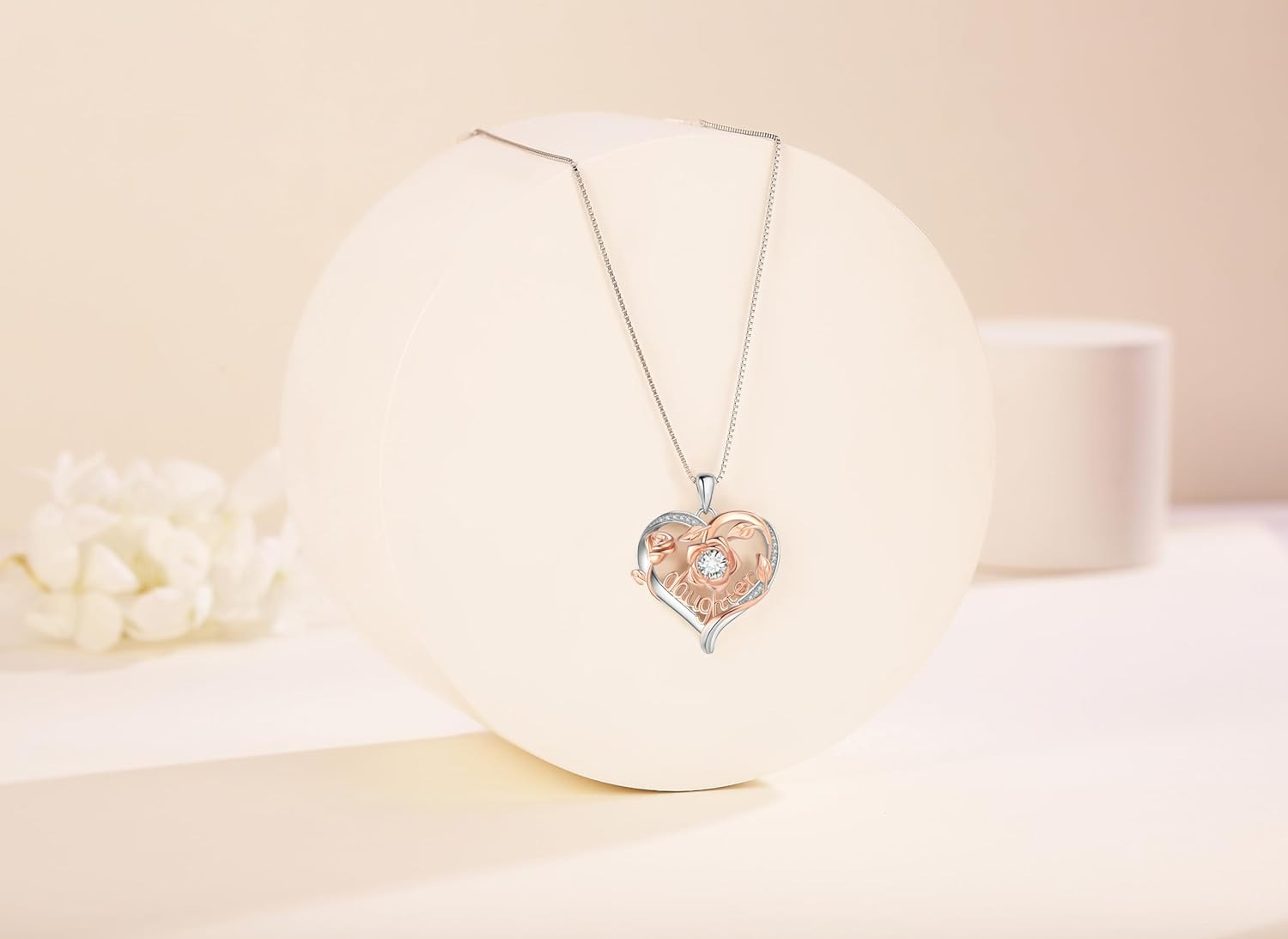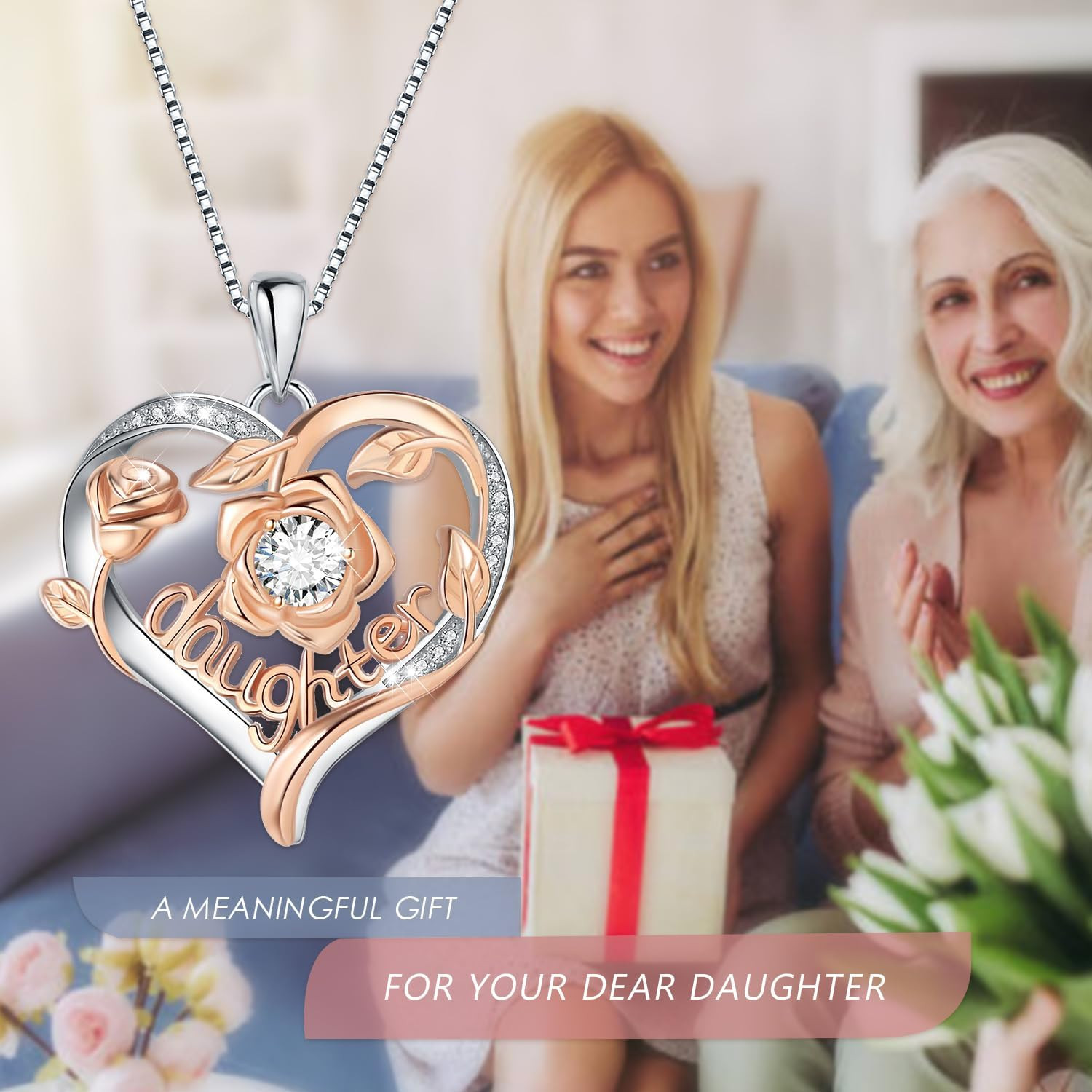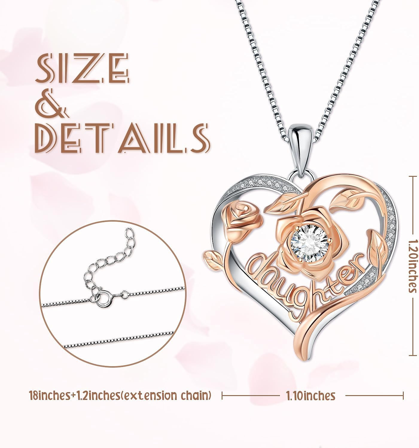 Mother Daughter Necklace S925 Sterling Silver Rose Heart Pendant Necklaces for M