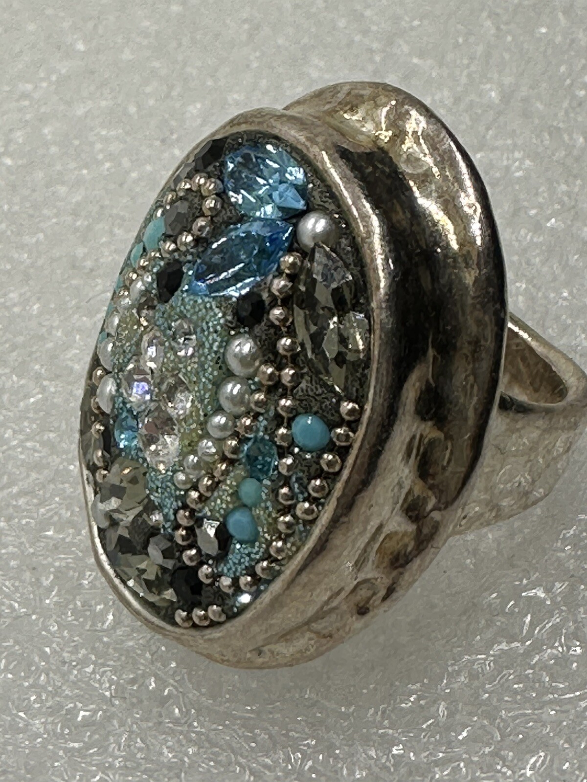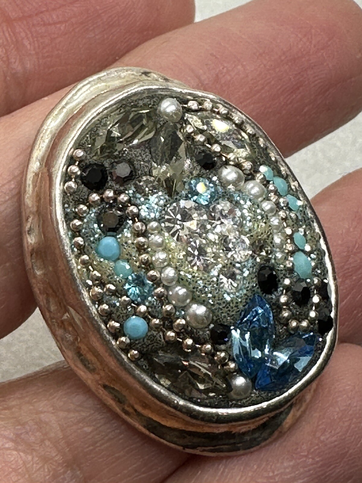 как выглядит Vintage Sterling Silver Topaz Pearls Ring Israel 925 фото