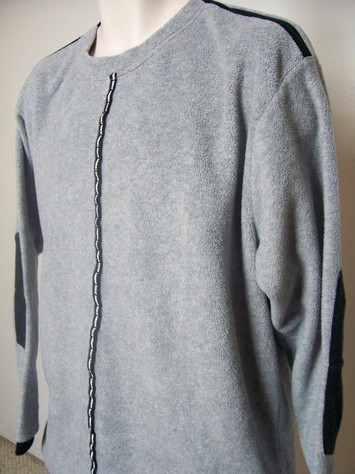 Classic Vintage TOMMY HILFIGER Fleece Pullover Gray w/ Black Elbow Pads Sz L