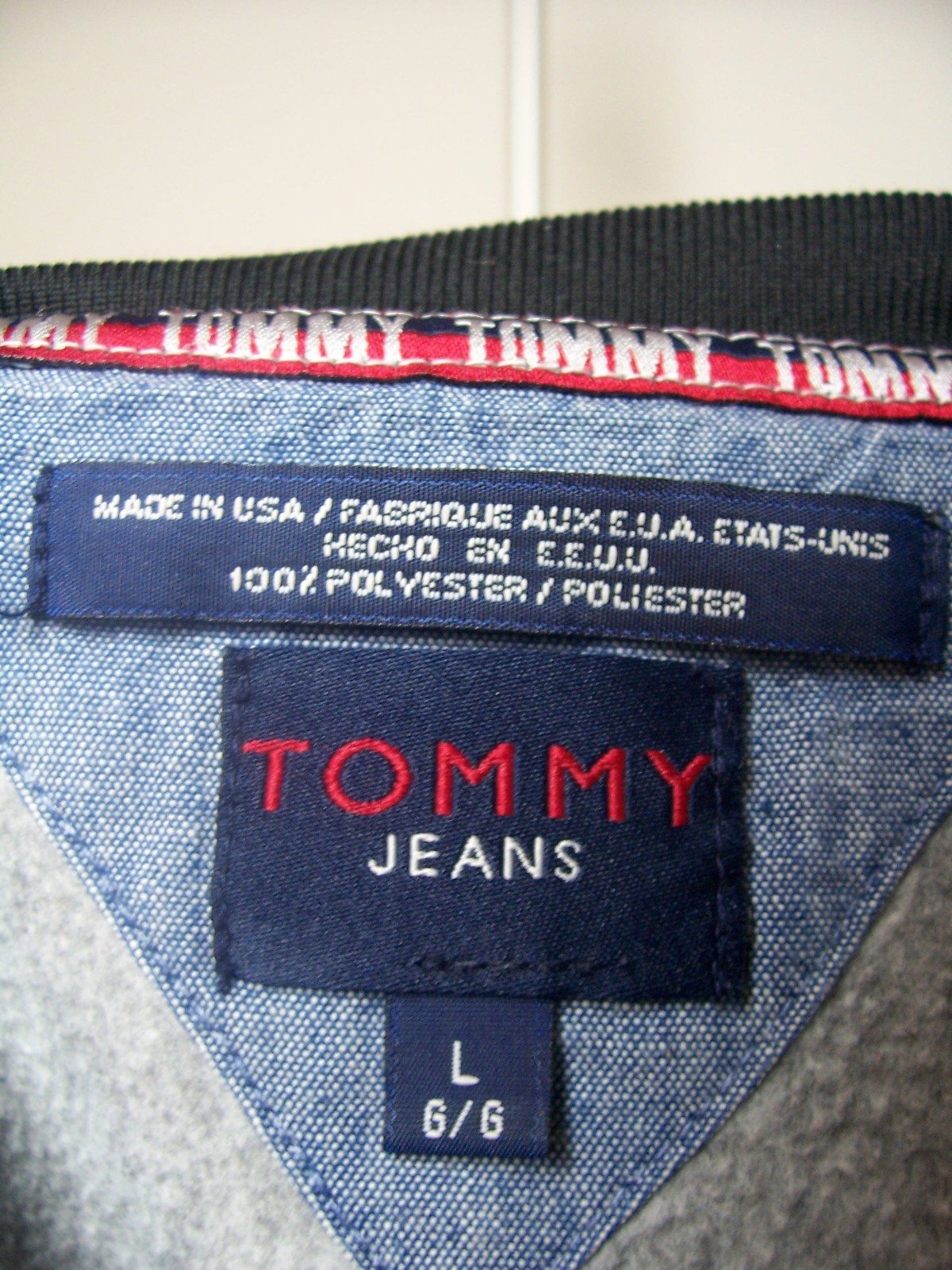 как выглядит Classic Vintage TOMMY HILFIGER Fleece Pullover Gray w/ Black Elbow Pads Sz L фото