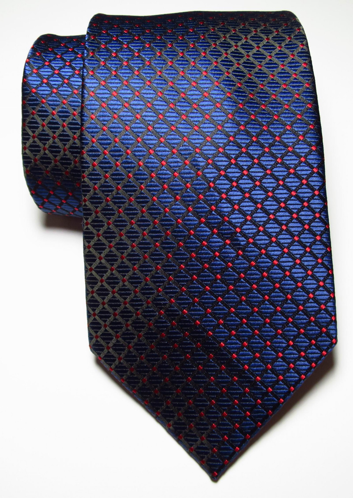 New Classic Checks Dark Blue Red JACQUARD WOVEN Silk Men's Tie Necktie