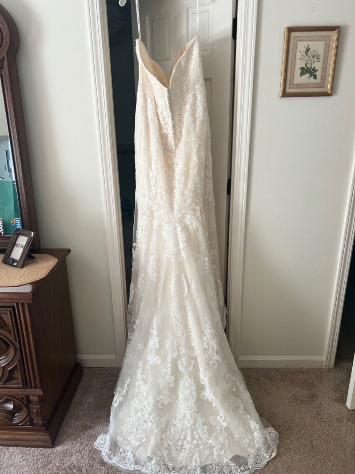как выглядит Champagne Strapless Lace Wedding dress size 18 and Veil фото