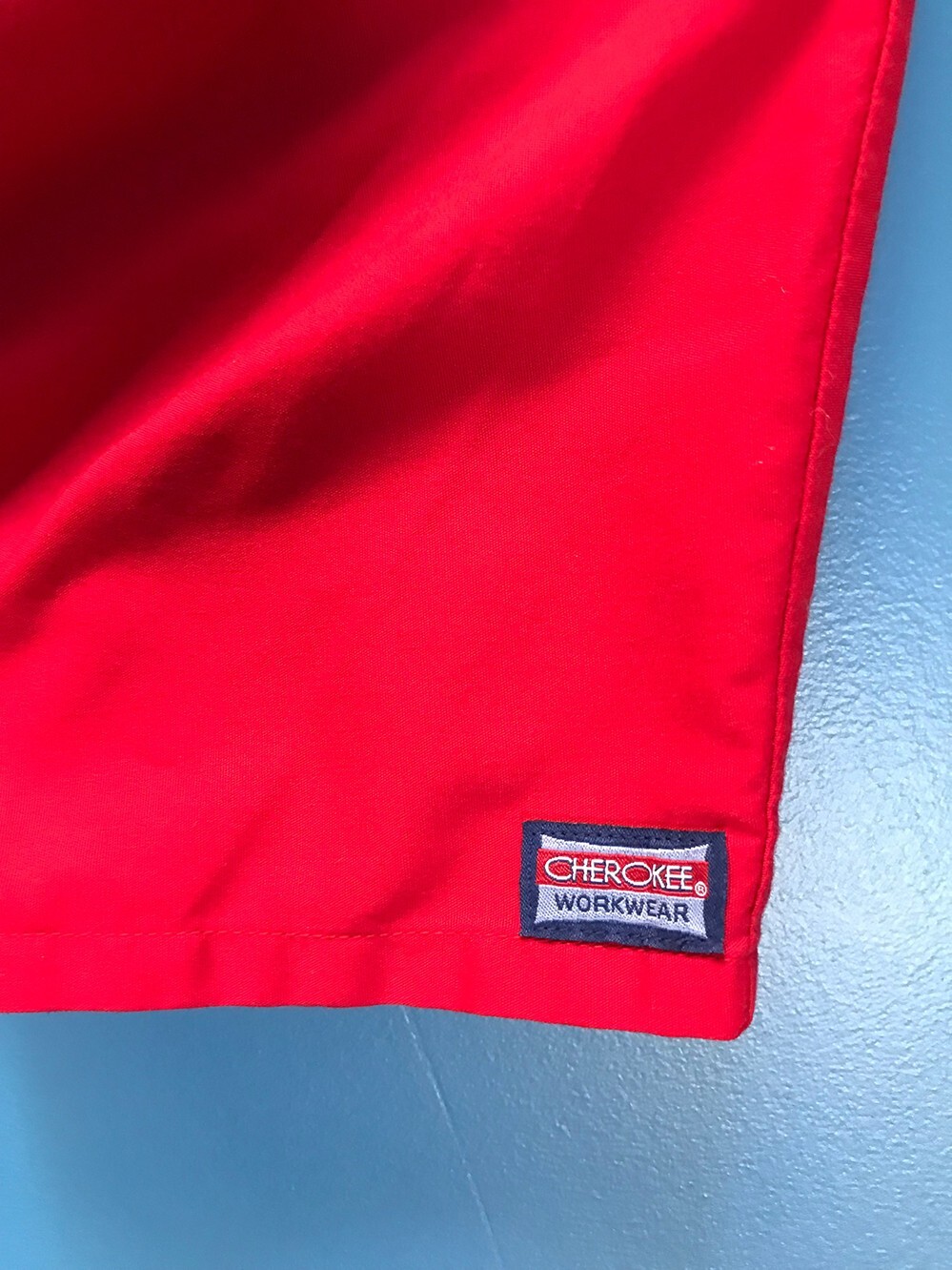 как выглядит Cherokee Workwear Womens Red V-Neck Scrub Top Size S 4700 фото